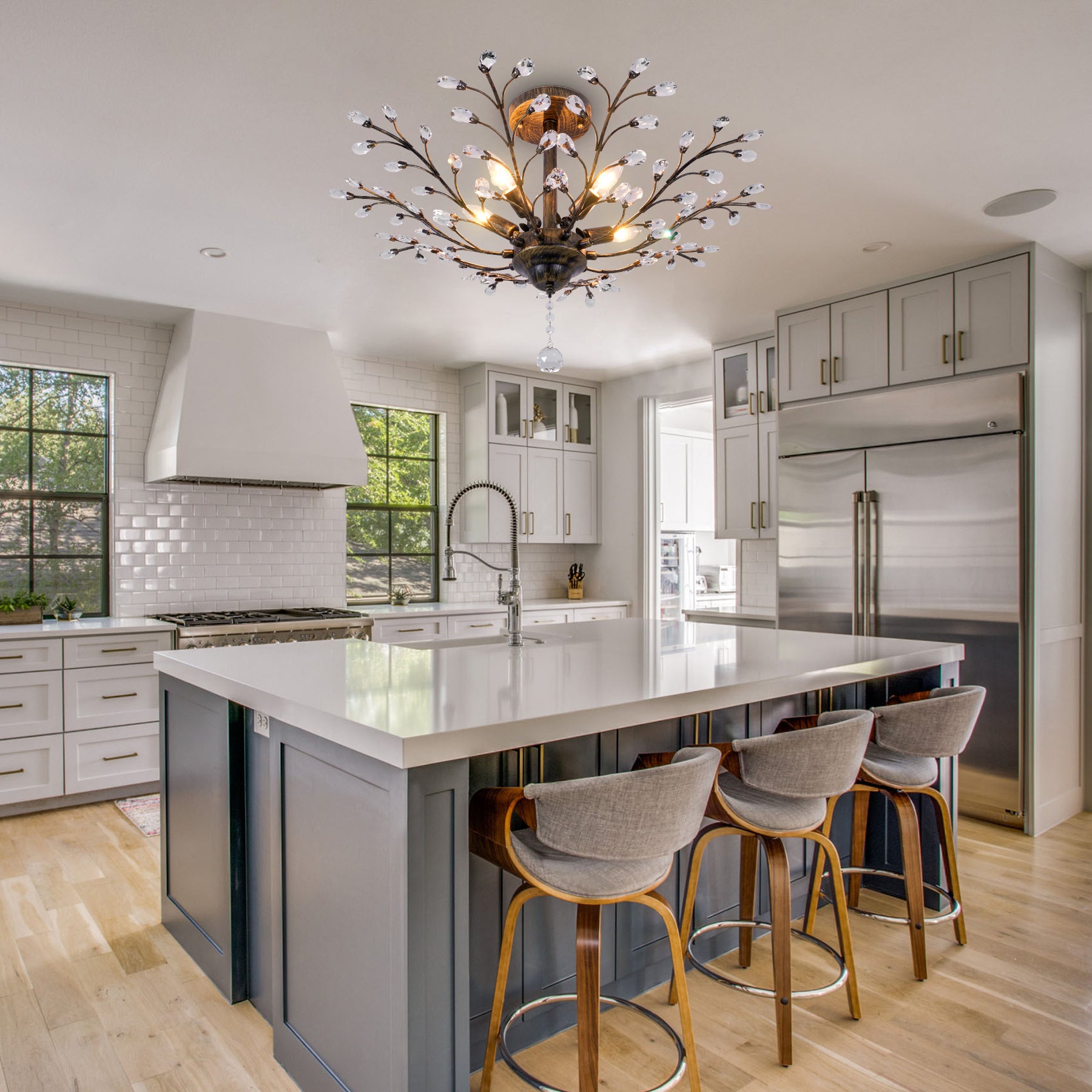 5-Light Antique Black Crystal Round Chandelier - Modern Semi Flush Mount Ceiling Light for Living Room, Dining Room, Bedroom, and More DS-SZ60