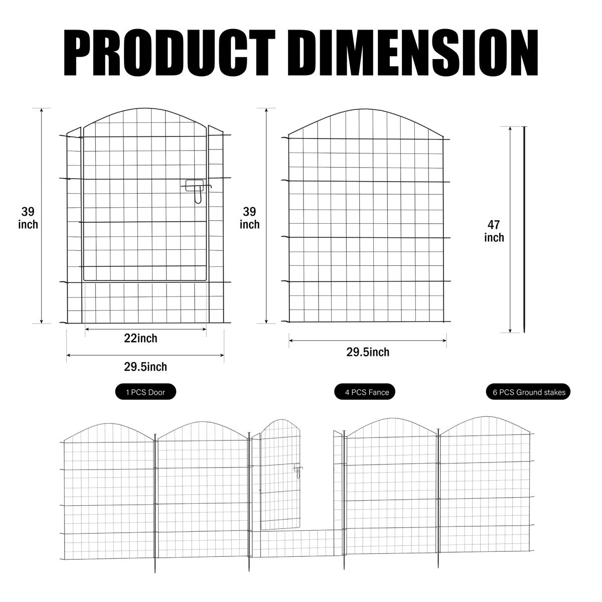 Material - Fence panels and stakes are constructed of steel with an attractive black powder-coated finish for weather-resistant and rust-resistant.