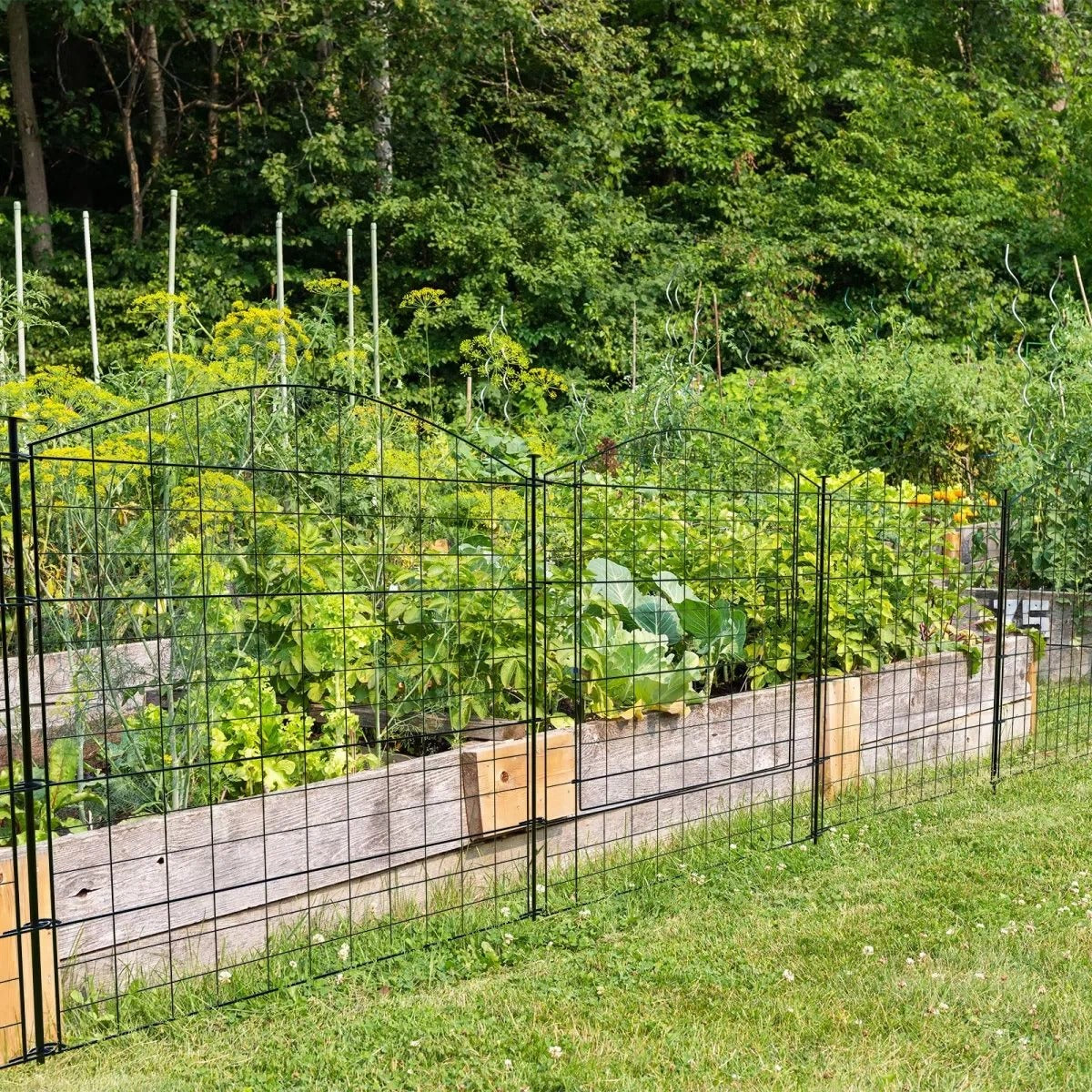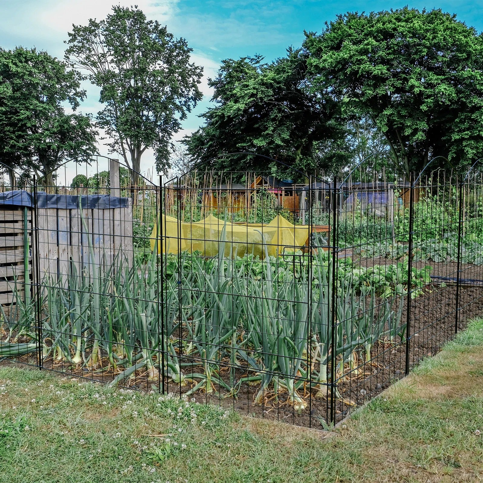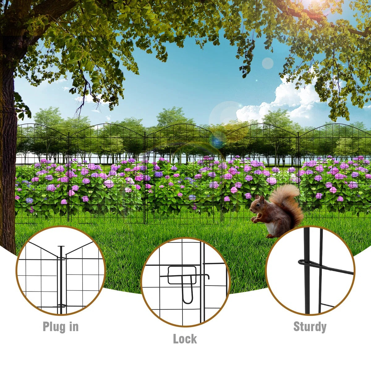 Give your backyard a new look with this metal garden fence. This fence features minimalist, stylish, and functional, making it perfect to add to your garden's allure. Each panel measures 31.5" tall by 29.5" wide. With 4 panels, 1 gate, and 6 stakes, this set is fully scalable to add more sections depending on the garden area you’d like to cover. This black garden fence will be a perfect choice for your garden or yard!