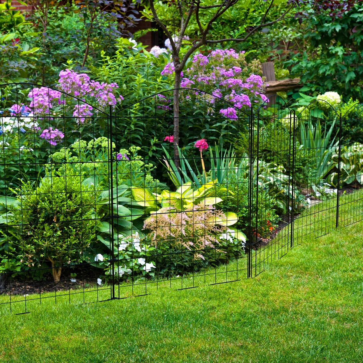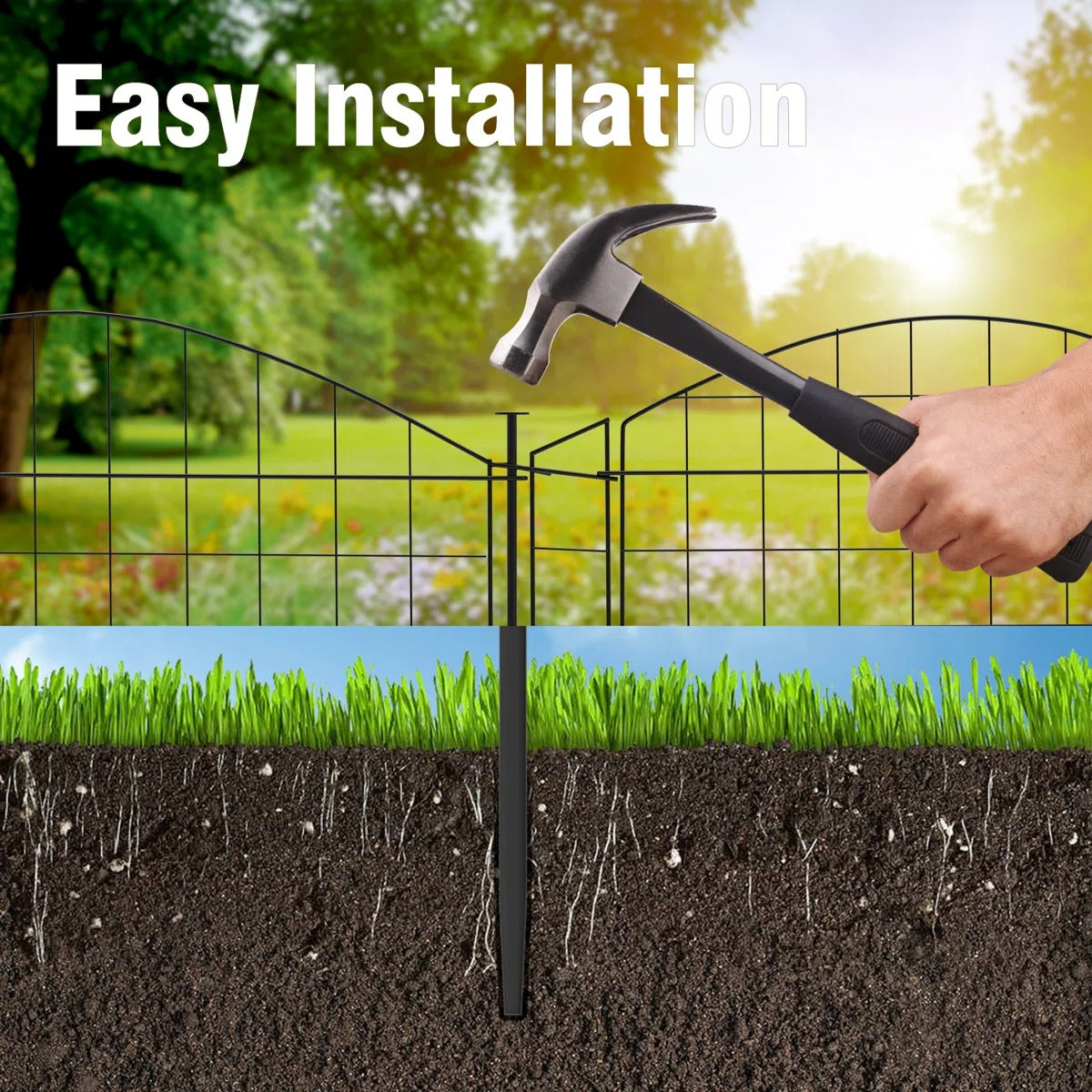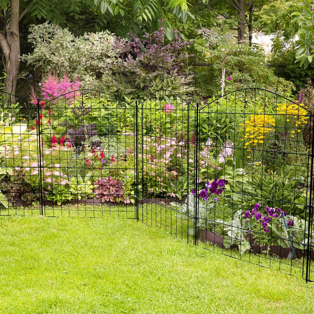 Give your backyard a new look with this metal garden fence. This fence features minimalist, stylish, and functional, making it perfect to add to your garden's allure. Each panel measures 31.5" tall by 29.5" wide. With 4 panels, 1 gate, and 6 stakes, this set is fully scalable to add more sections depending on the garden area you’d like to cover. This black garden fence will be a perfect choice for your garden or yard!