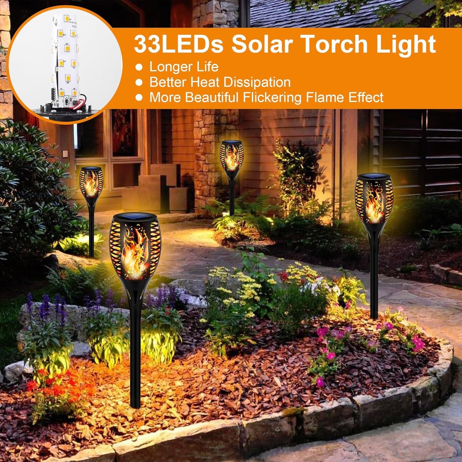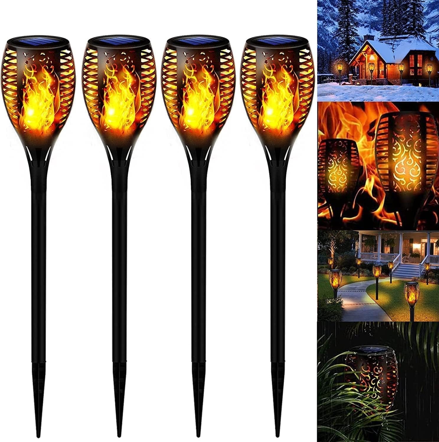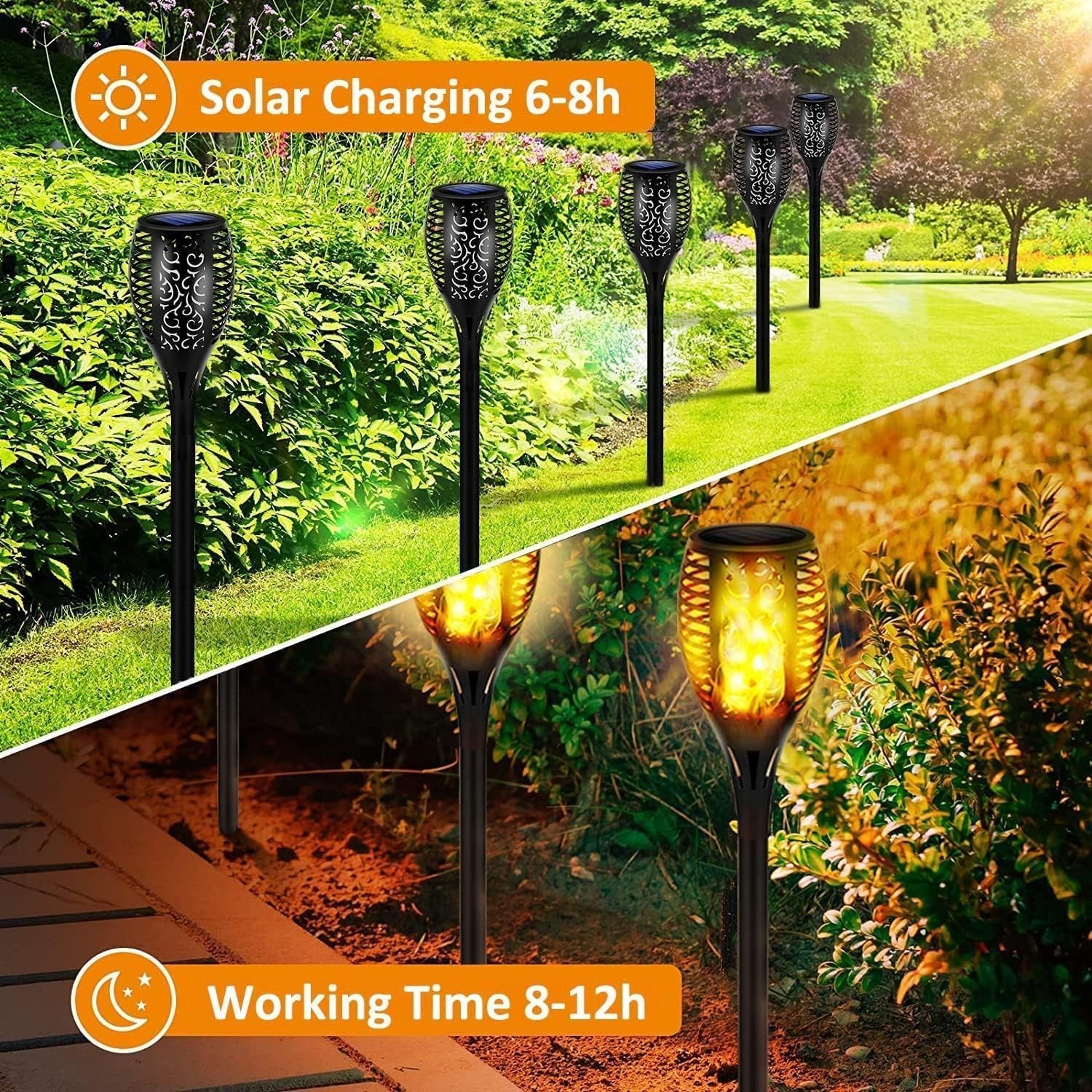 - Solar garden light with flames Swonuk solar garden light with 33 LEDs offers you a realistic flickering flame effect. Each light flickers warm yellow lights, imitating extremely realistic and natural dance flames. With its bright radiation, it is an ideal companion for outdoor events such as family parties, barbecues and camping.