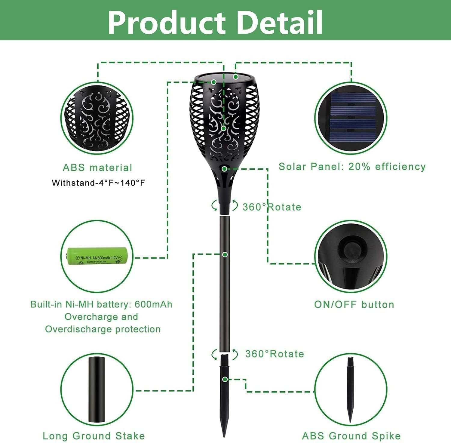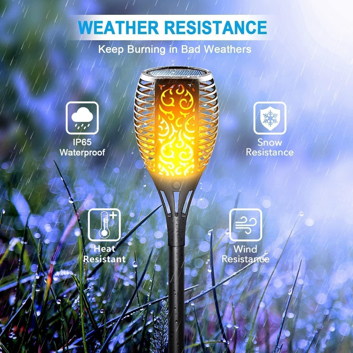 - IP68 waterproof and widely used; made of high-quality ABS plastic, the compact garden torches are designed with protection cl IP68, which can withstand all weather conditions all year round. You can use it in paths, pool, garden, bench, patio, fence, deck, party, barbecue, camping, wedding or any outdoor environment.