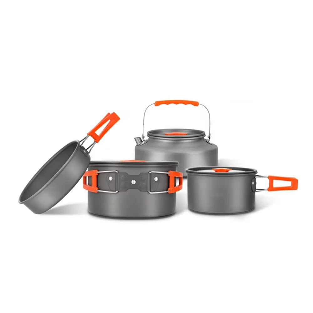 4 PC Outdoor Camping Cookware Set Kettle Cooking Pot Pan with Bowl and Spoon Aluminum Portable Cutlery Set