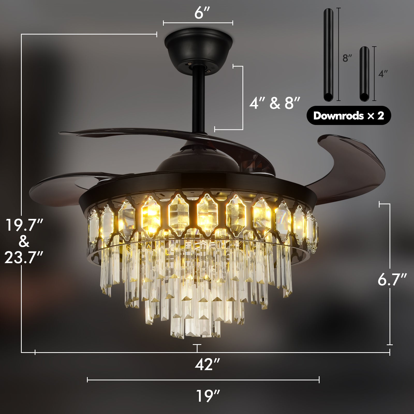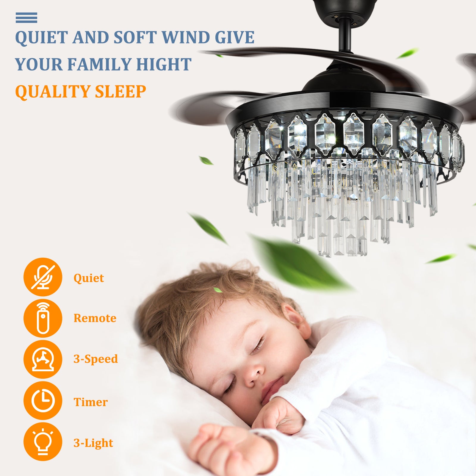 42" Black Crystal Celing Fan with LED Lights (110v) DS-FZ196