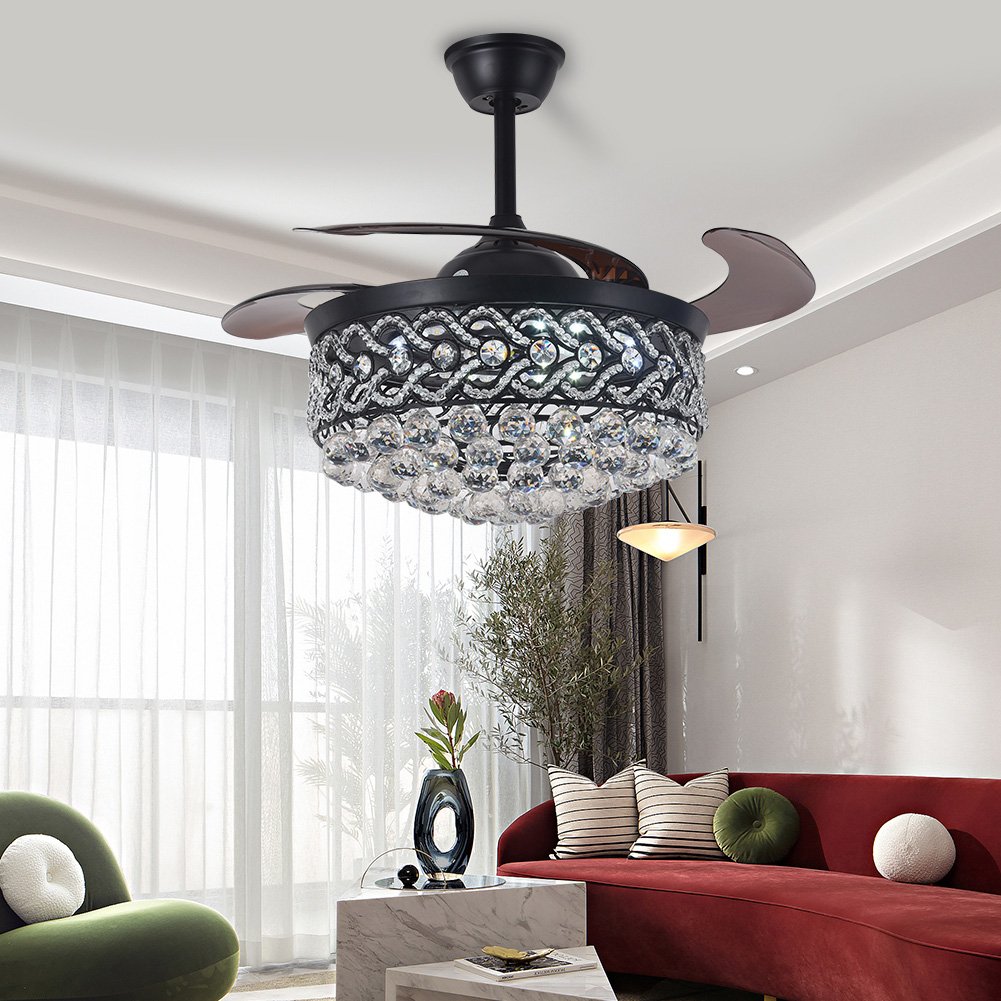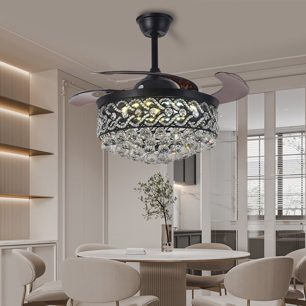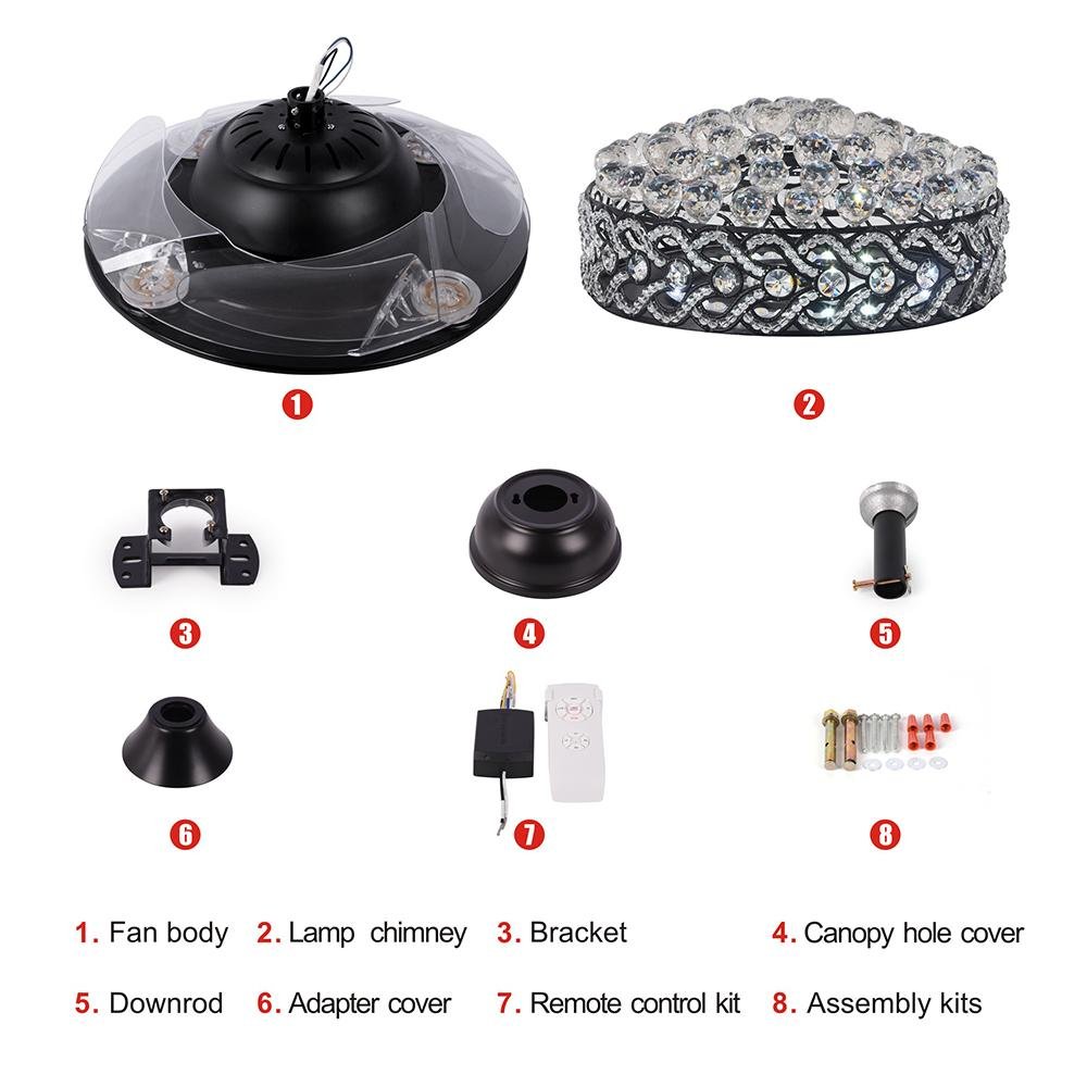 42" Black Crystal Celing Fan with LED Lights DS-FH61