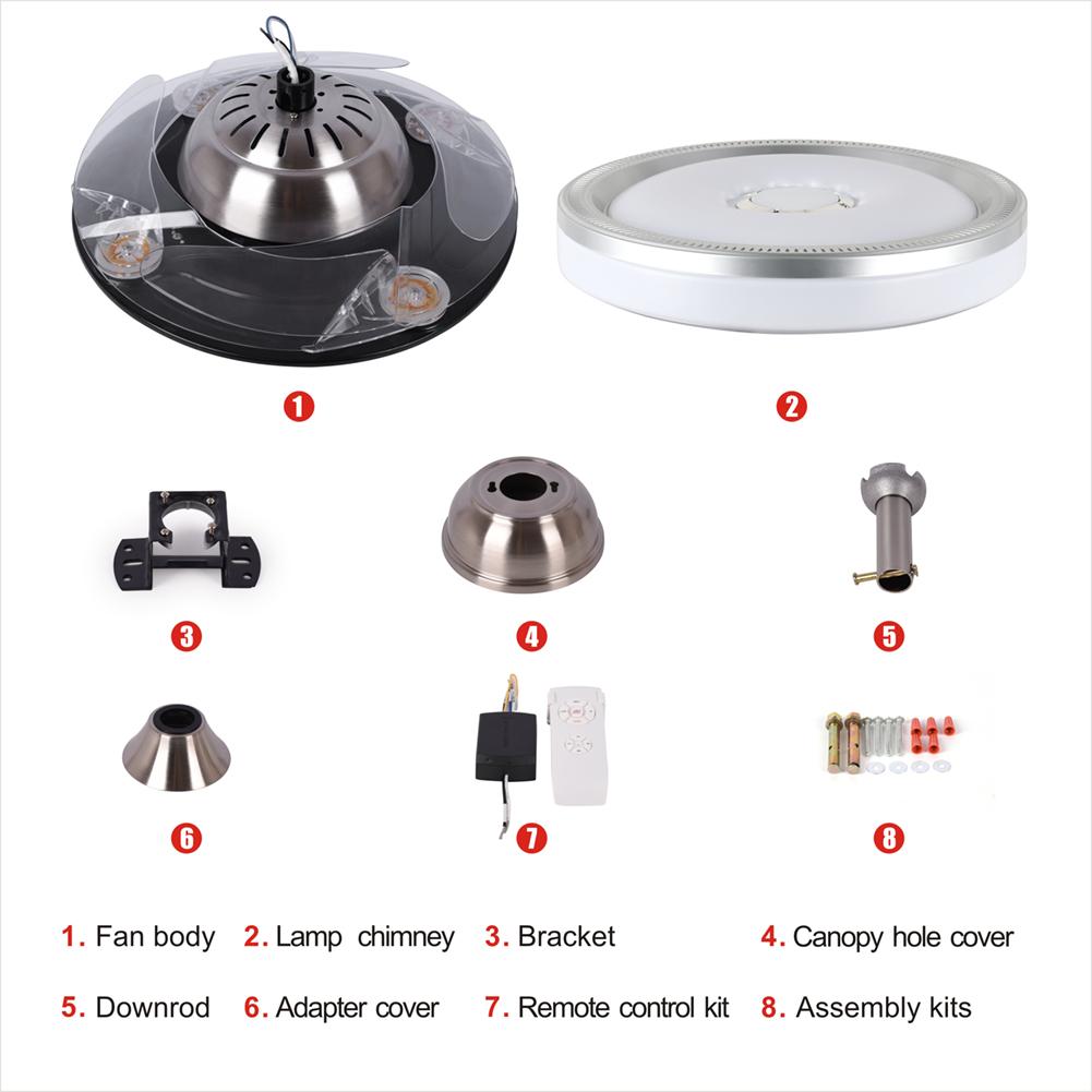 Control mode: With remote control, LED lamp seven-color dimming (" seven-color "refers to colorful meaning) LED lamp wattage (36W), lumen (3500K), air flow (CFM) wind flow in 5000CFM
