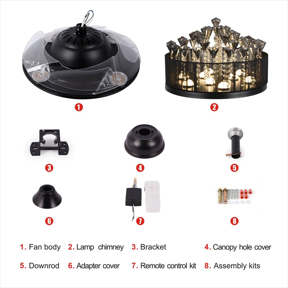 Control mode: With remote control, LED lamp three-tone light (white light, neutral light, warm light) LED light source wattage (36W), lumen (3500K), air flow (CFM) wind flow in 5000CFM