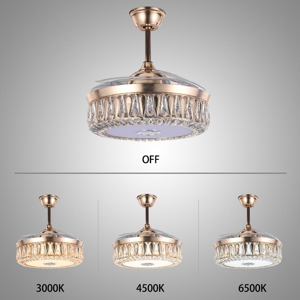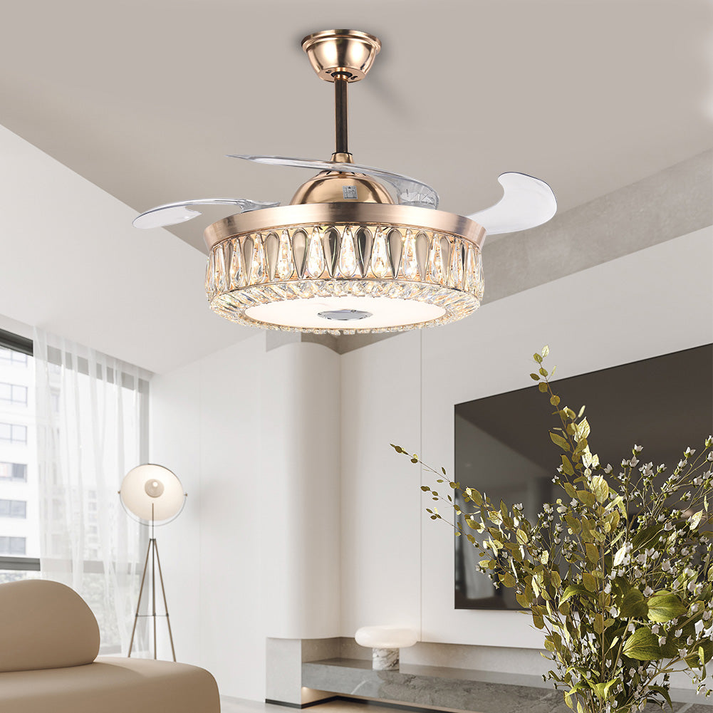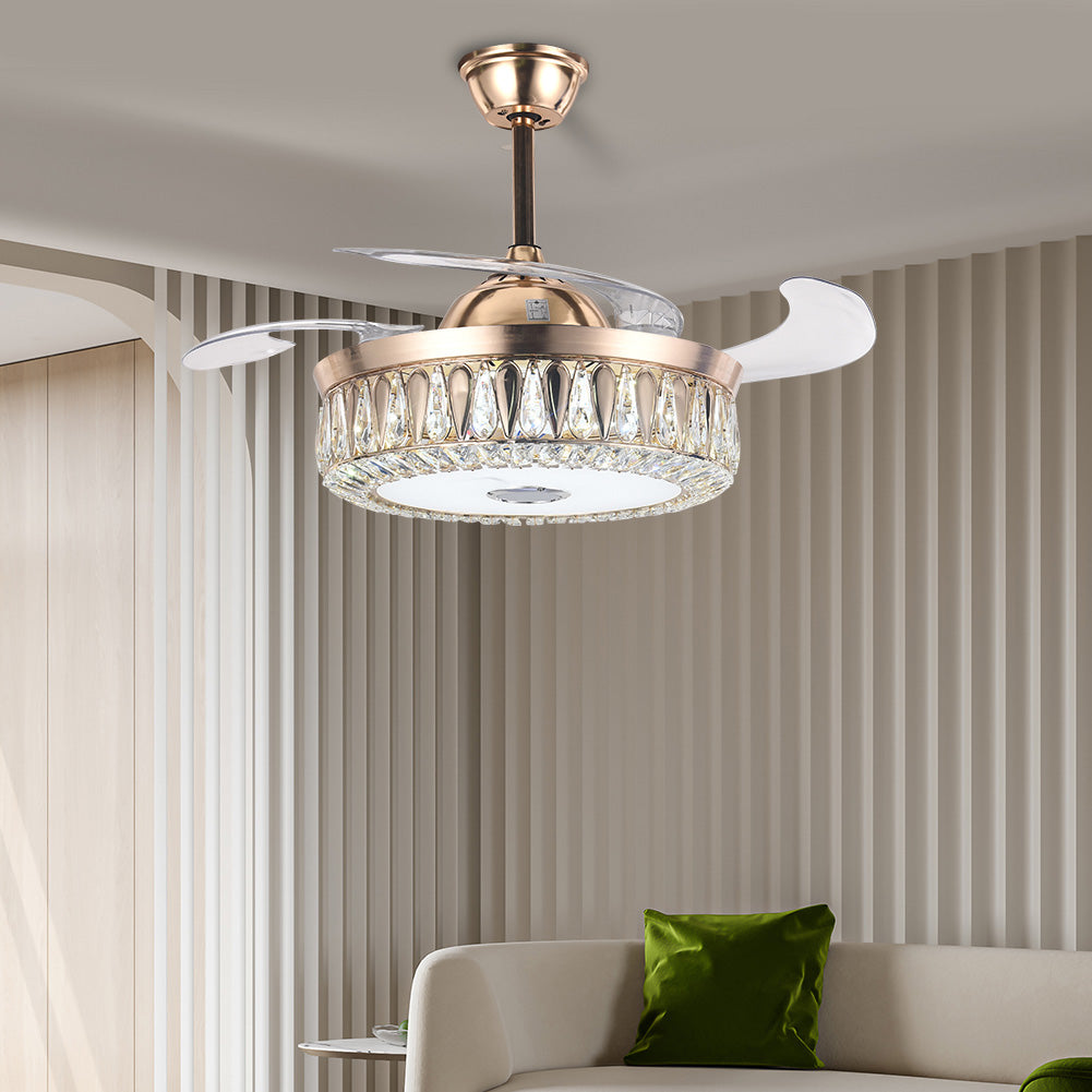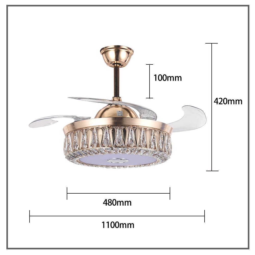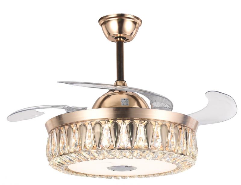 42" Golden Living Room Ceiling Bluetooth Invisible Fan with Light DS-FH49