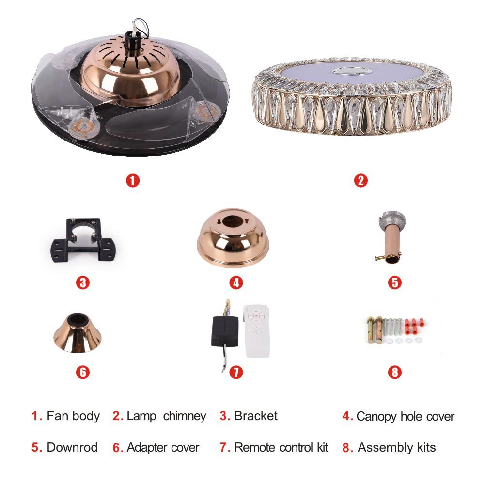 Lamp shade material: iron + crystal + acrylic light shield Mobile phone scan code package Bluetooth installation instructions on the "QR code" download APP, you can play music on the phone, mobile phone control lighting