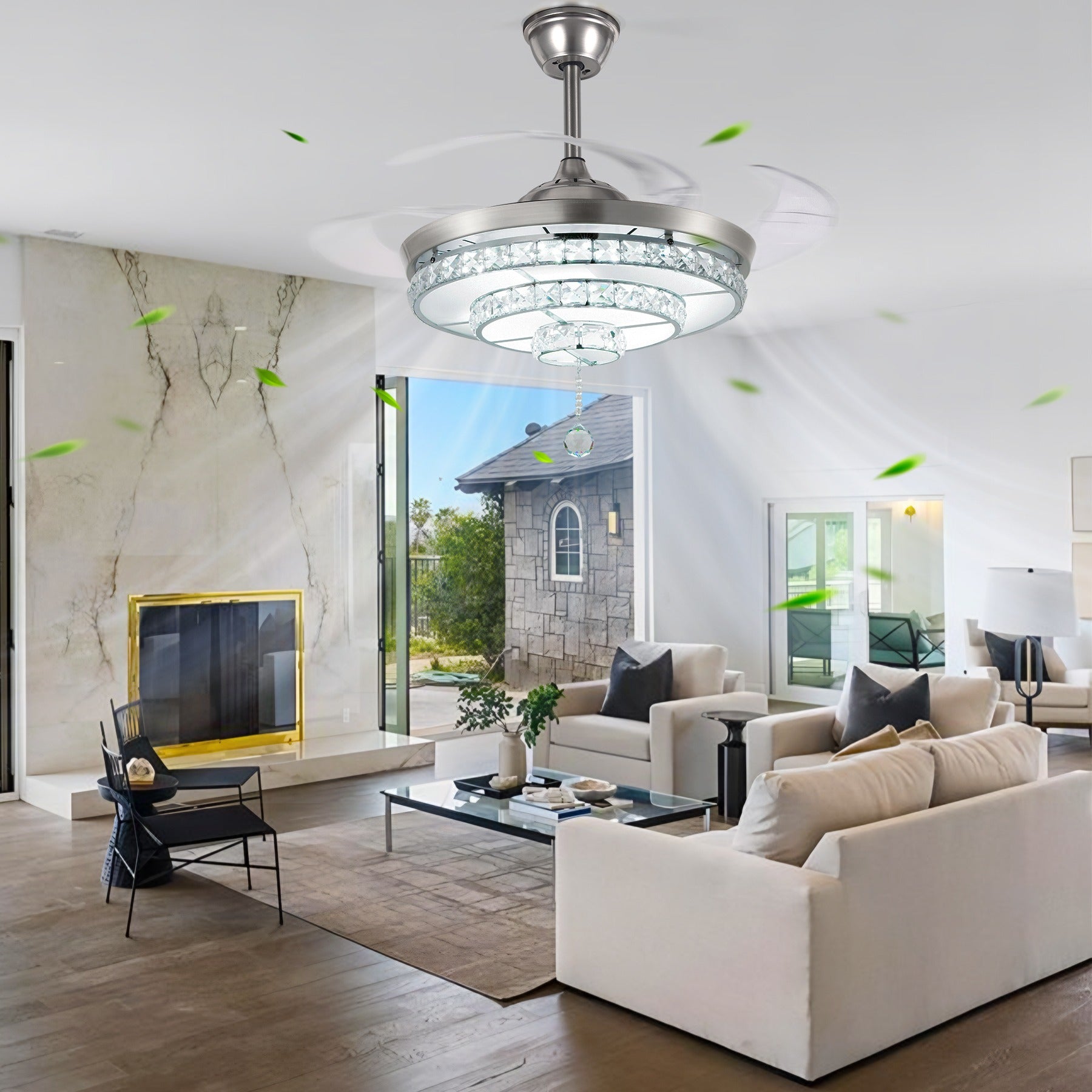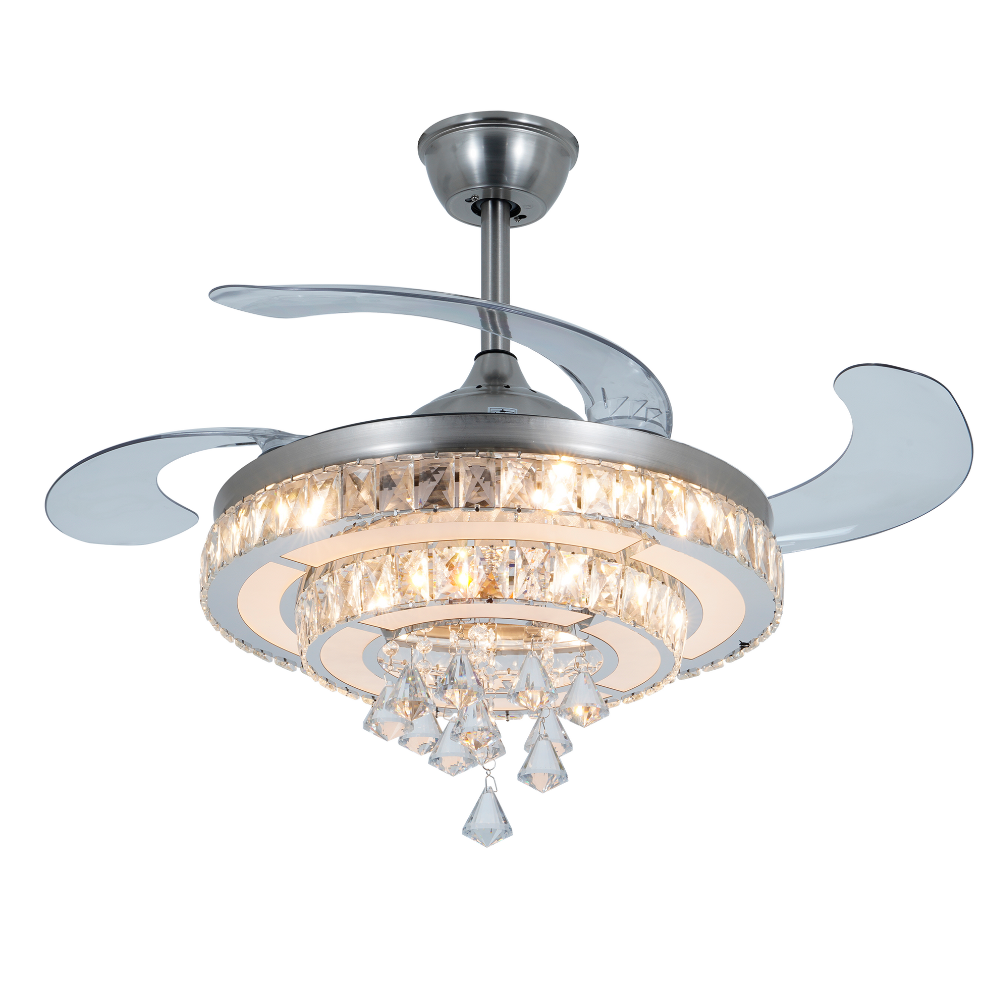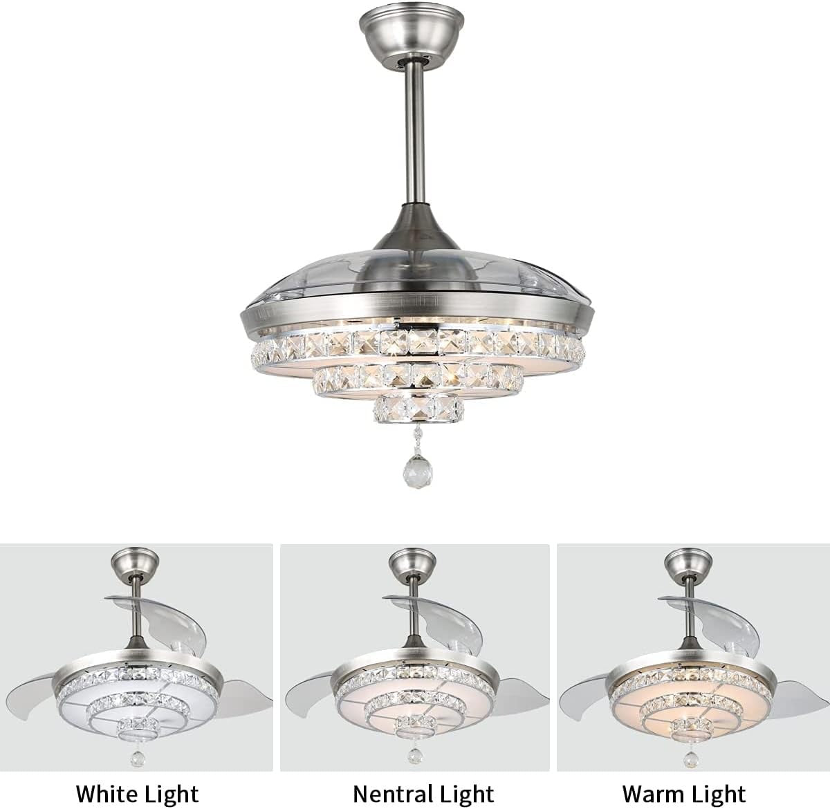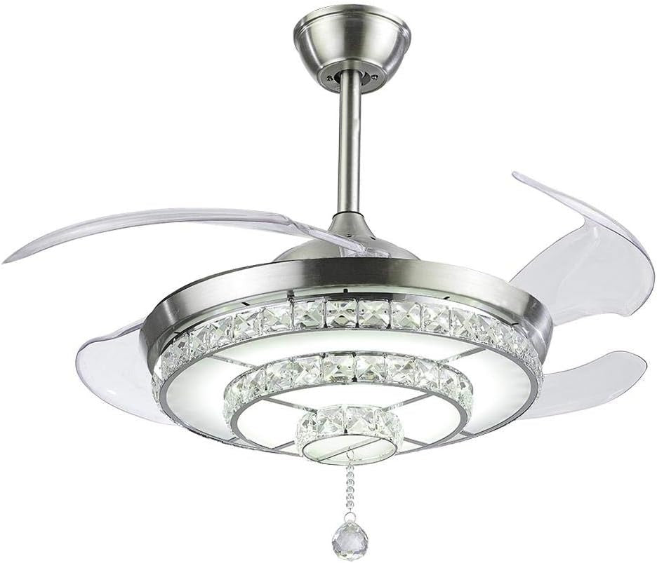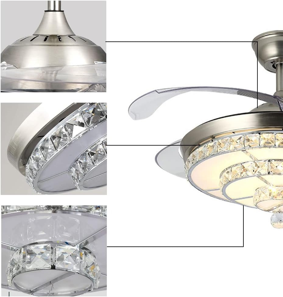 42 inch Modern Crystal Ceiling Fans Lights with Remote, Retractable Crystal Chandelier Ceiling Fan Lights