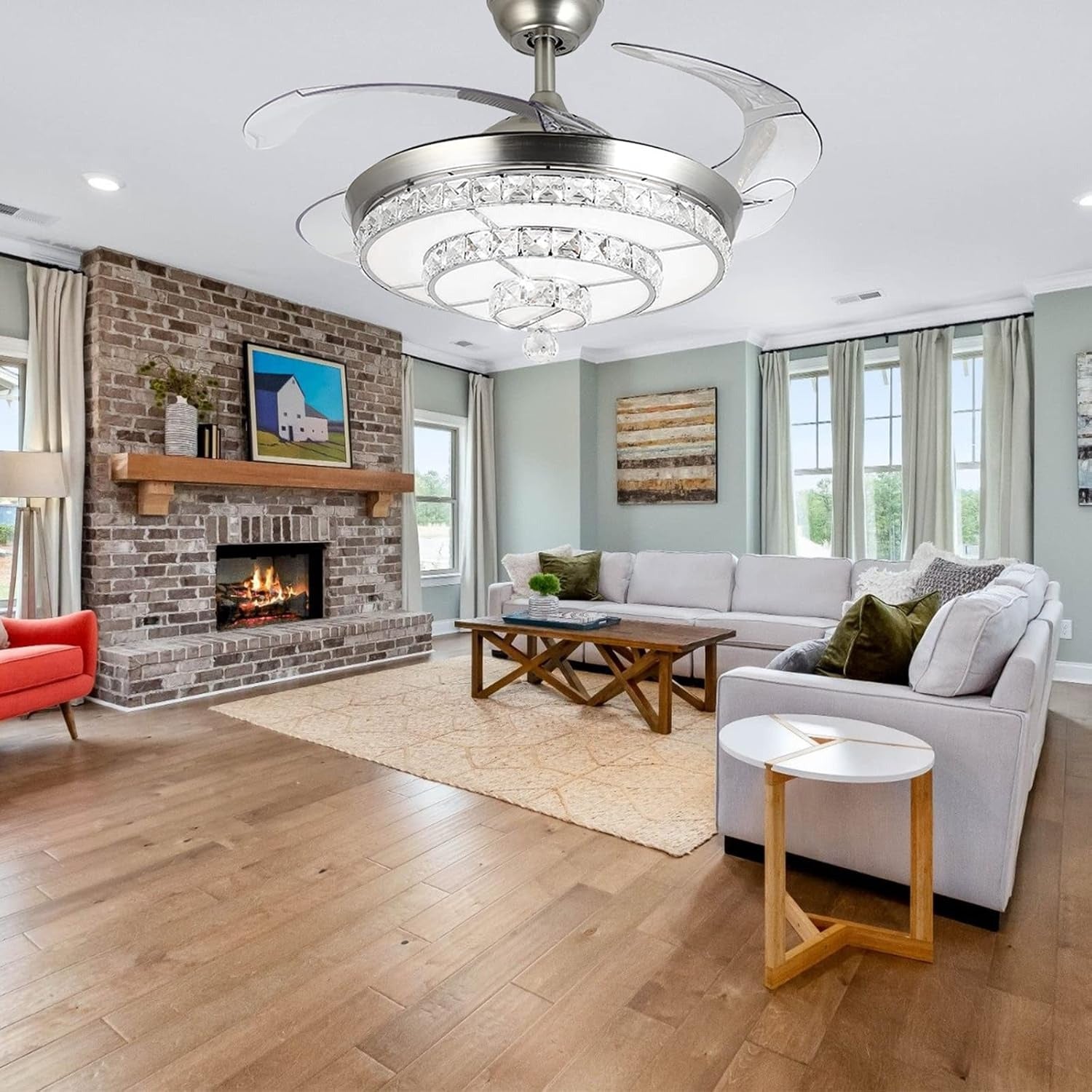 - 【Material & K9 Crystal】: Ceiling fan, Crystal chandelier and LED lights 3 in 1, Top k9 crystal decor, durable acrylic transparent blades, A-grade IP plating, A variety style of home decoration can perfectly match, suitable for room 8-25 m2.