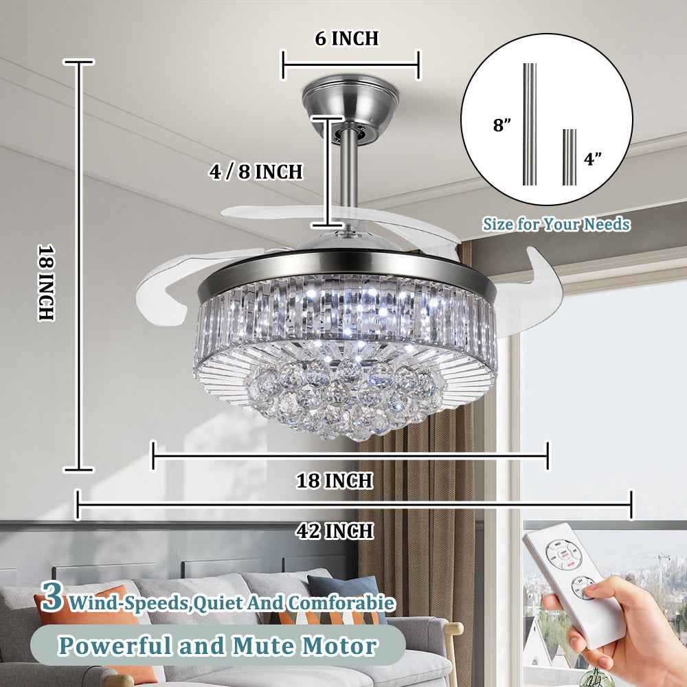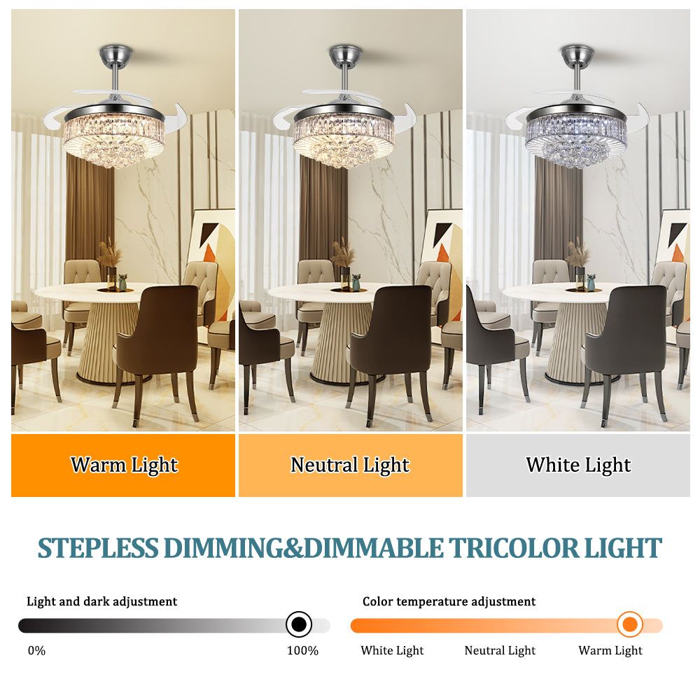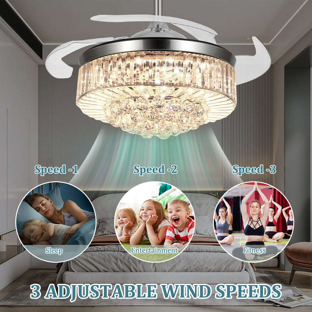 - Modern Luxury Fandelier: Ceiling fan and crystal chandelier light 2 in 1. A variety of decoration styles can be perfect match.