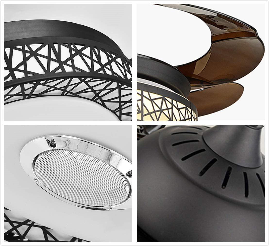 - Features: Remote control 3 light color(White-Neutral-Warm), 3 fan speed(Low-Mid-High), Timer setting(1/2/4/8 hours automatic turn off). The 4 retractable acrylic ceiling fan blades will stretch out and put inside automatically when turn on and off.