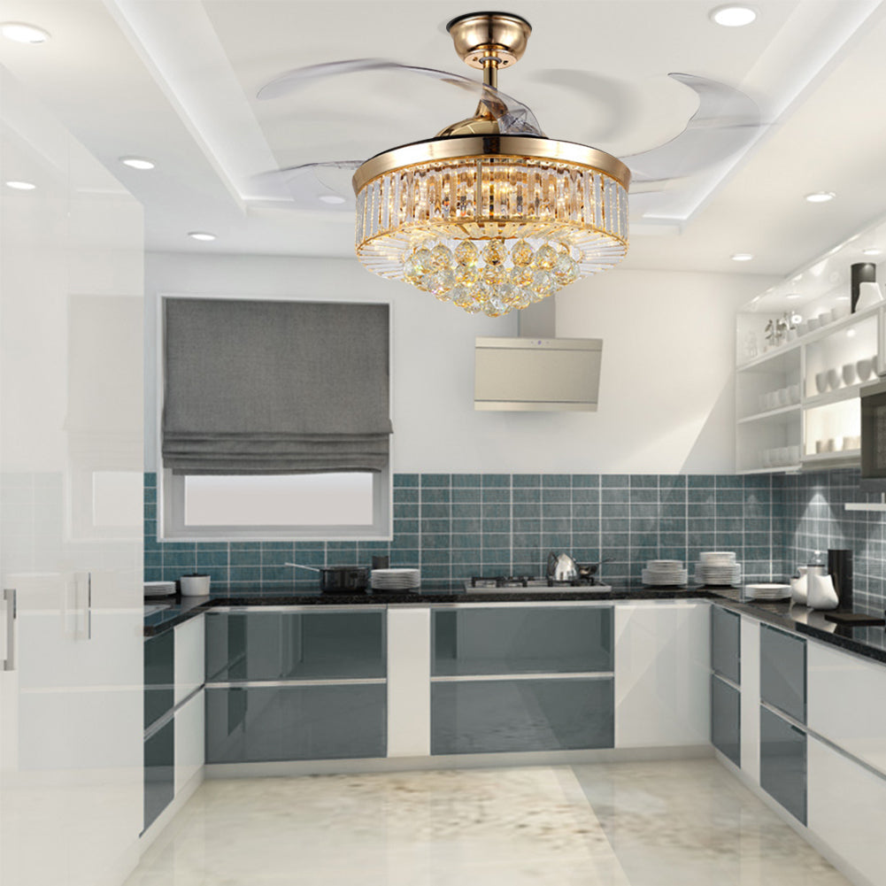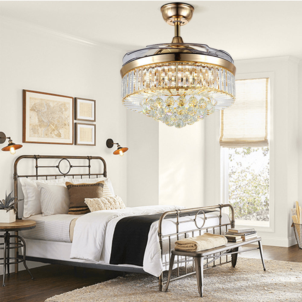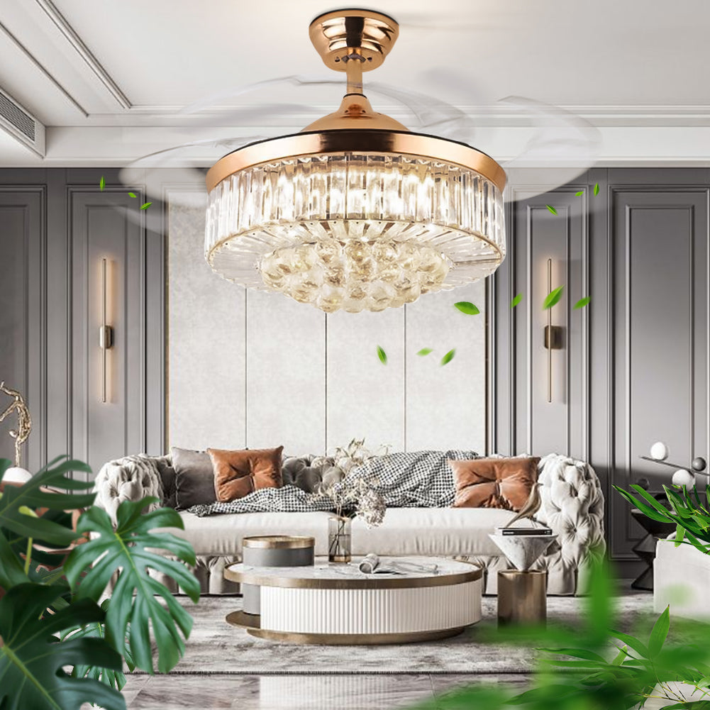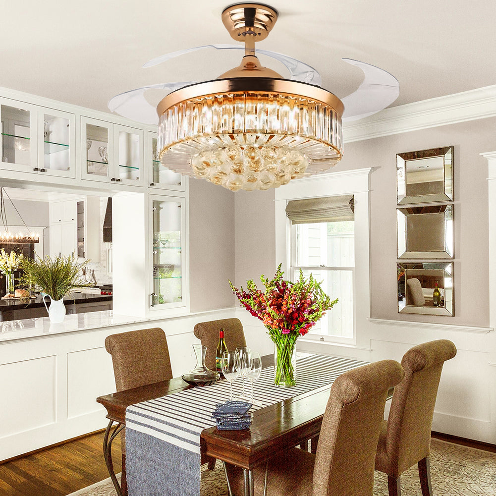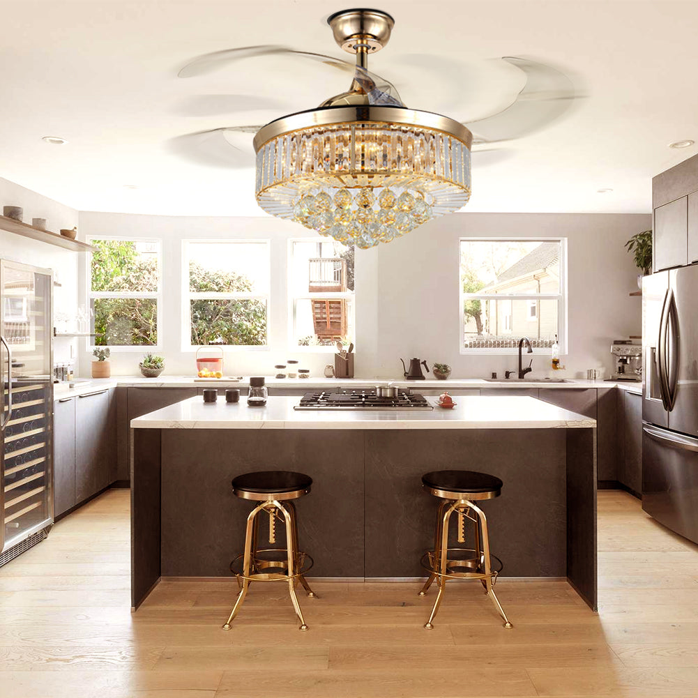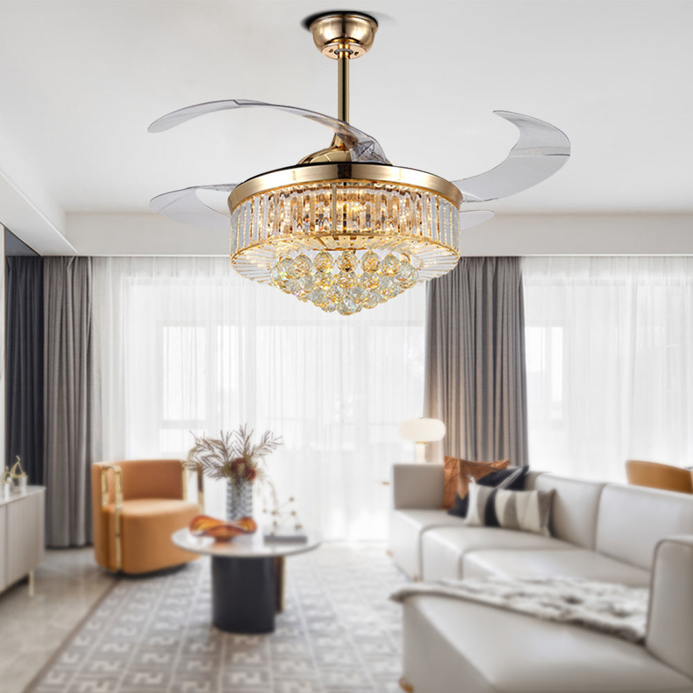 Retractable Fandelier Ceiling Fan Light Gold DS-LX58