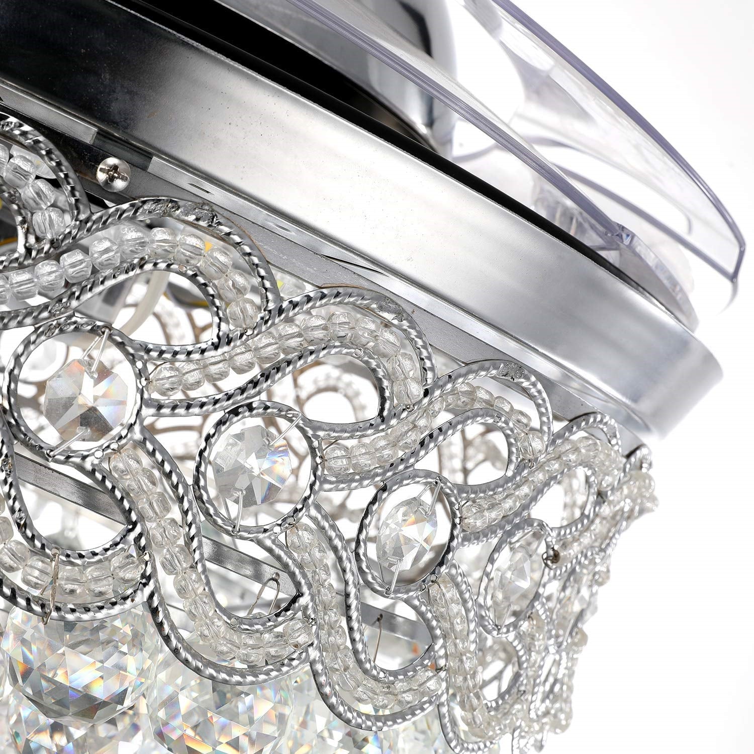 - Style: Luxury Silver Ceiling Fan and Crystal Chandelier 2 in 1, designed with modern heart-shape and retractable blades makes it an unique decor for your space