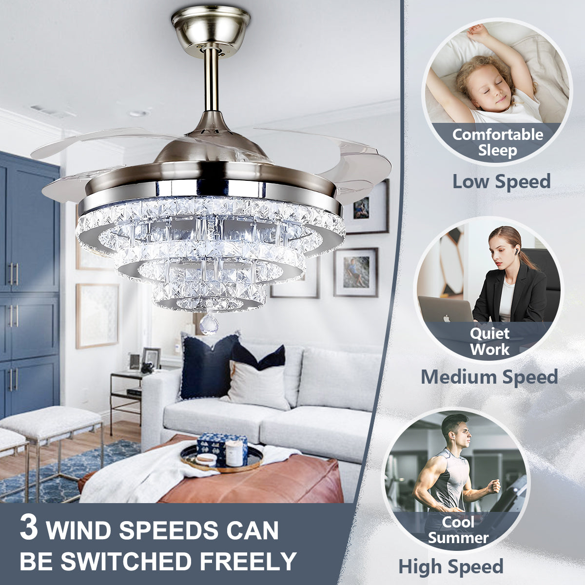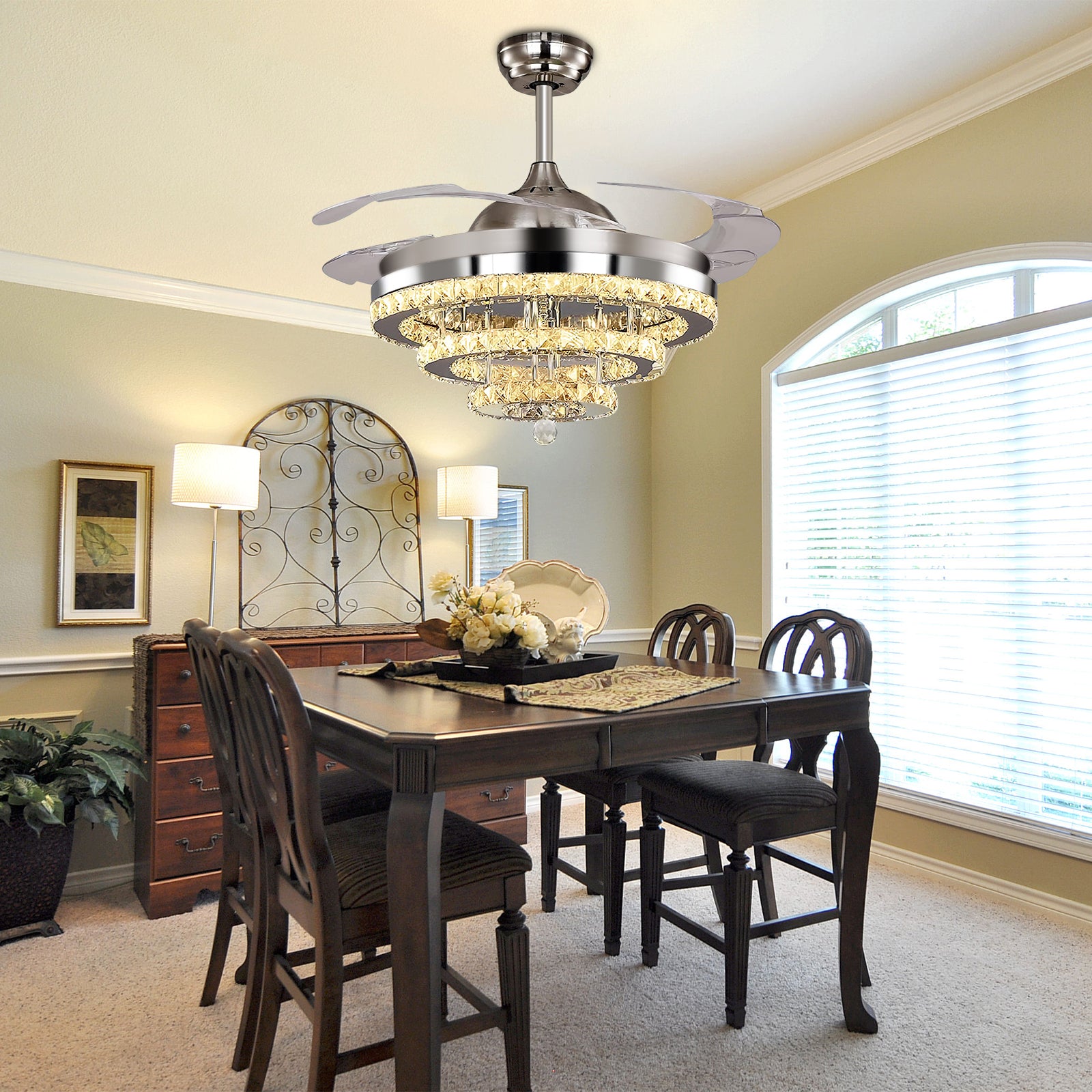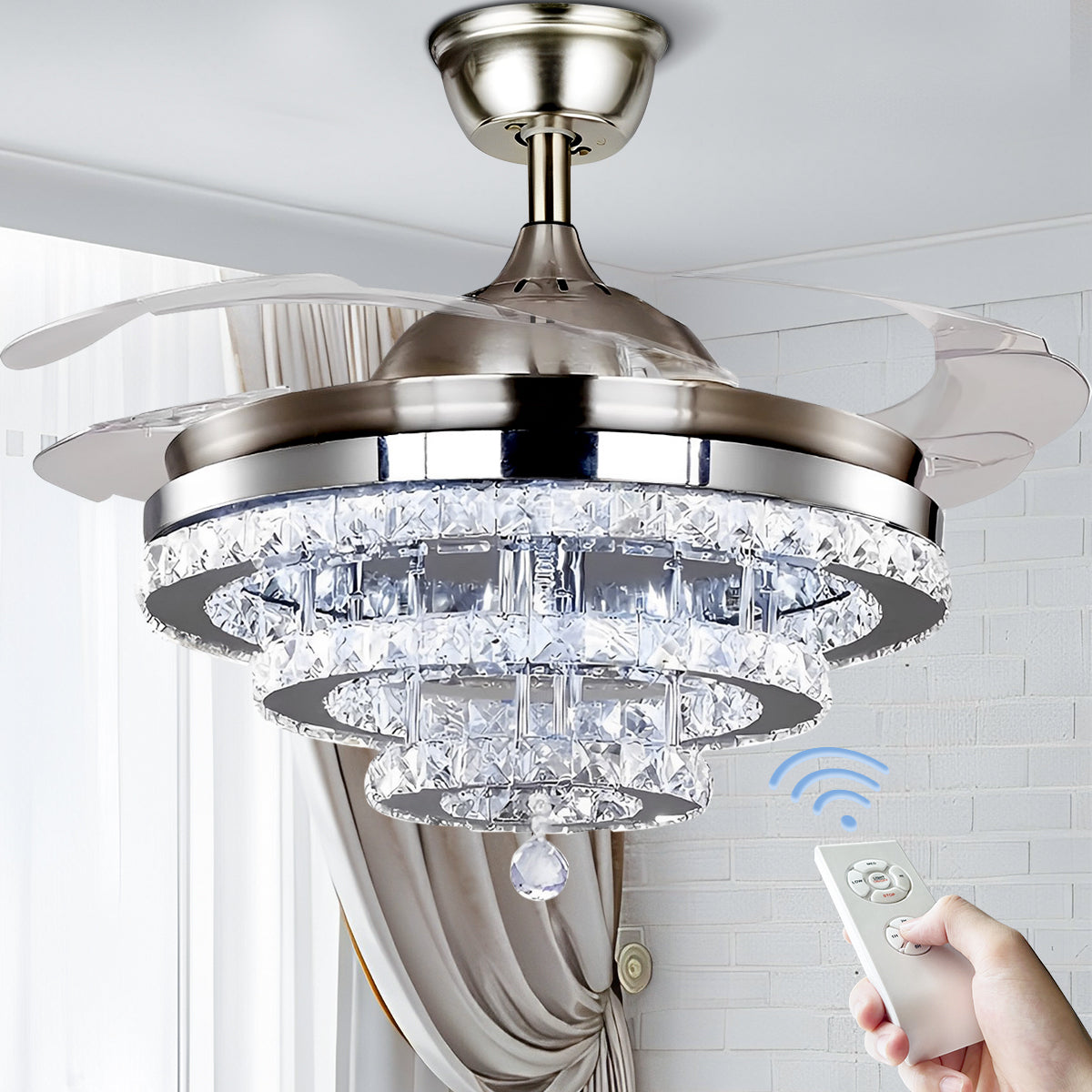 42" Silver Crystal Fan Chandelier DS-FZ103