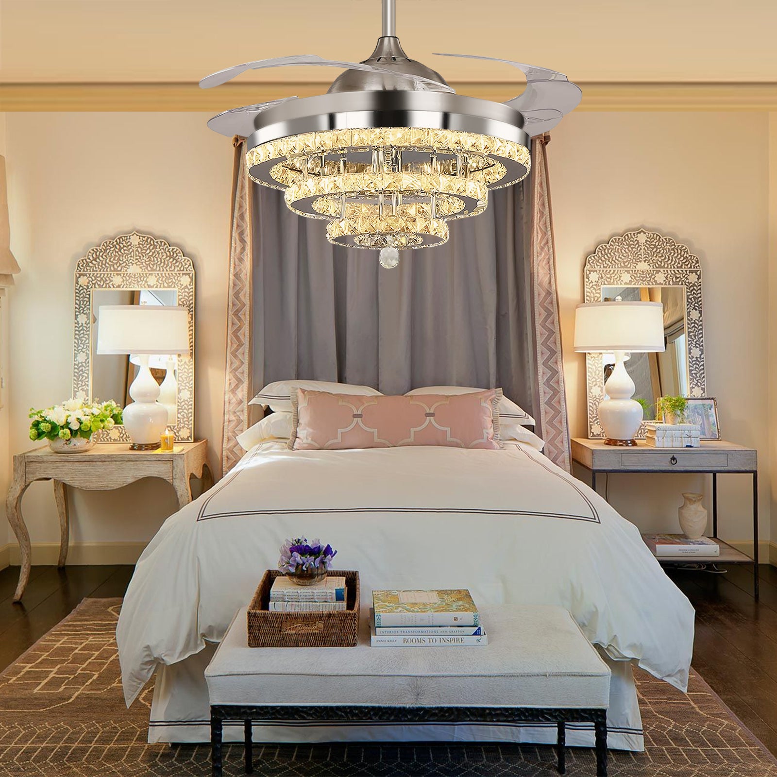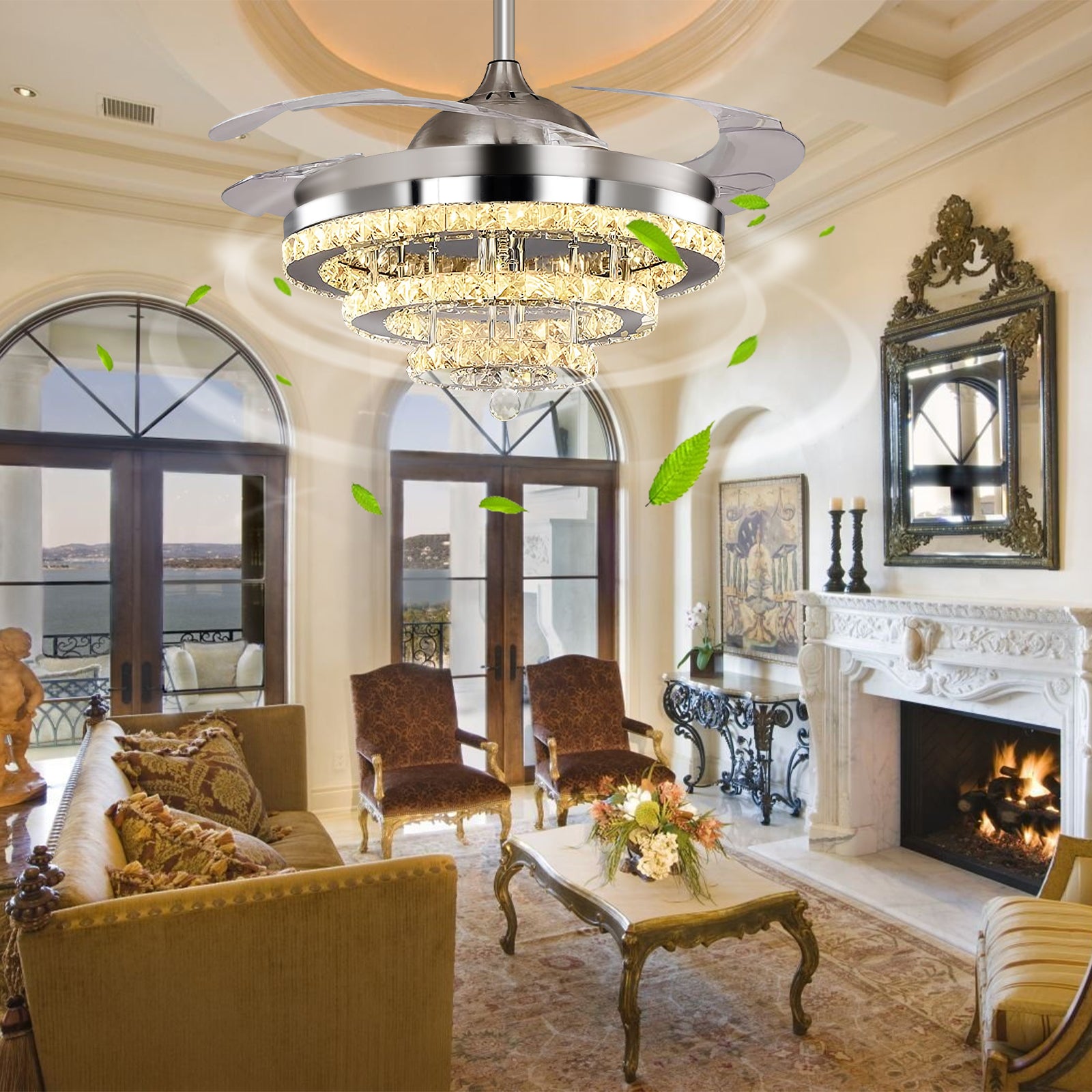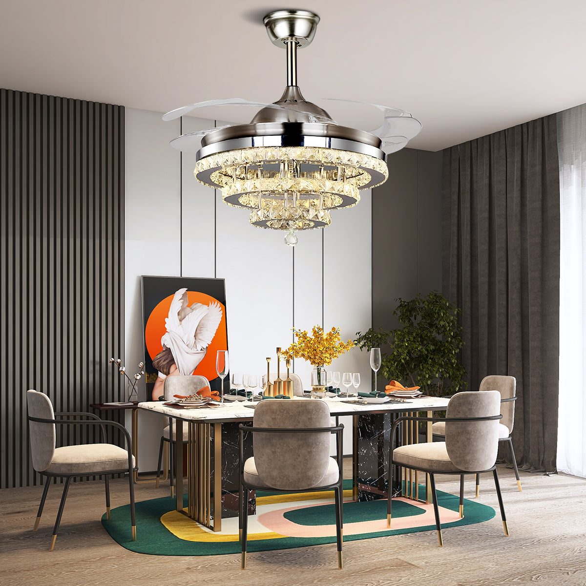 42" Silver Crystal Fan Chandelier DS-FZ103