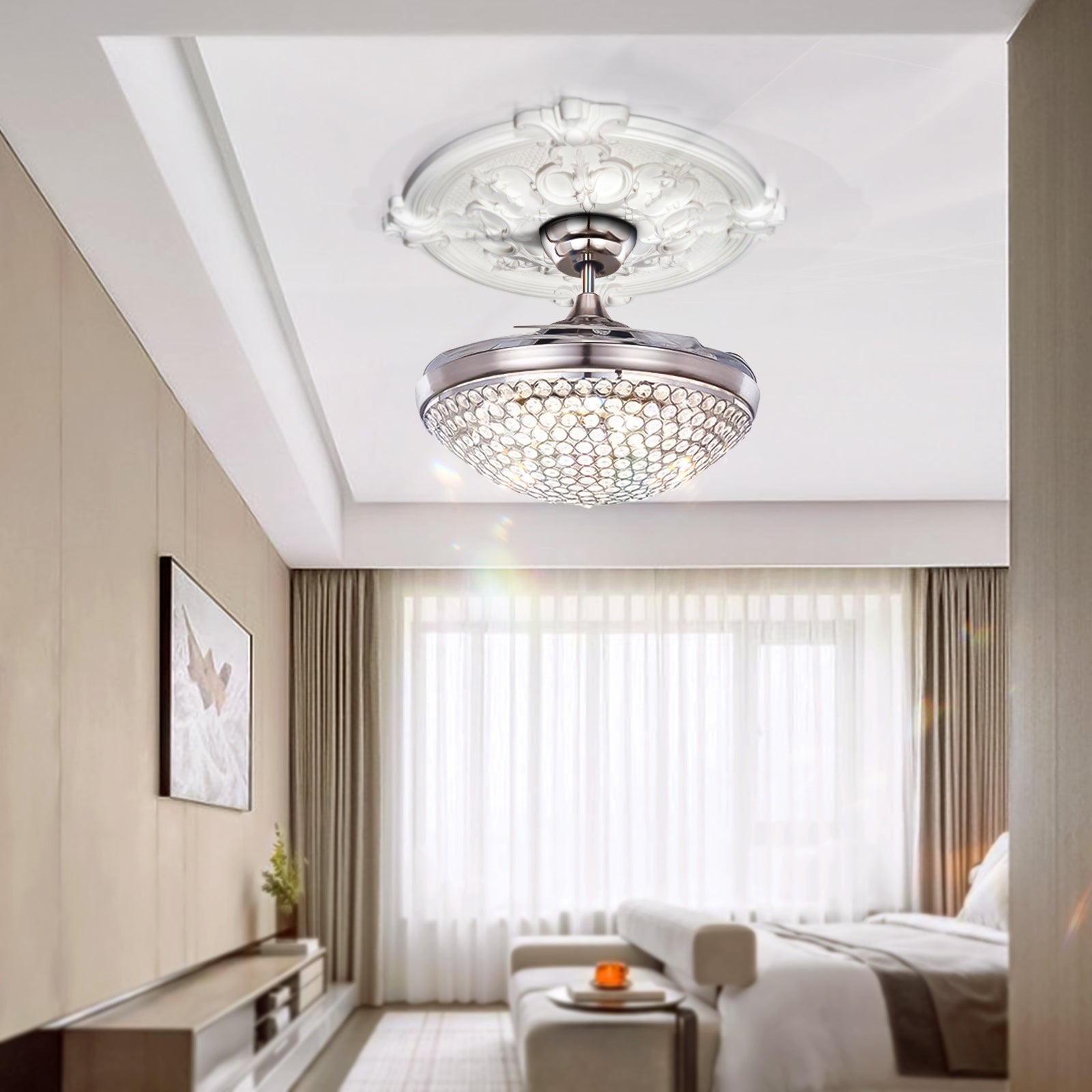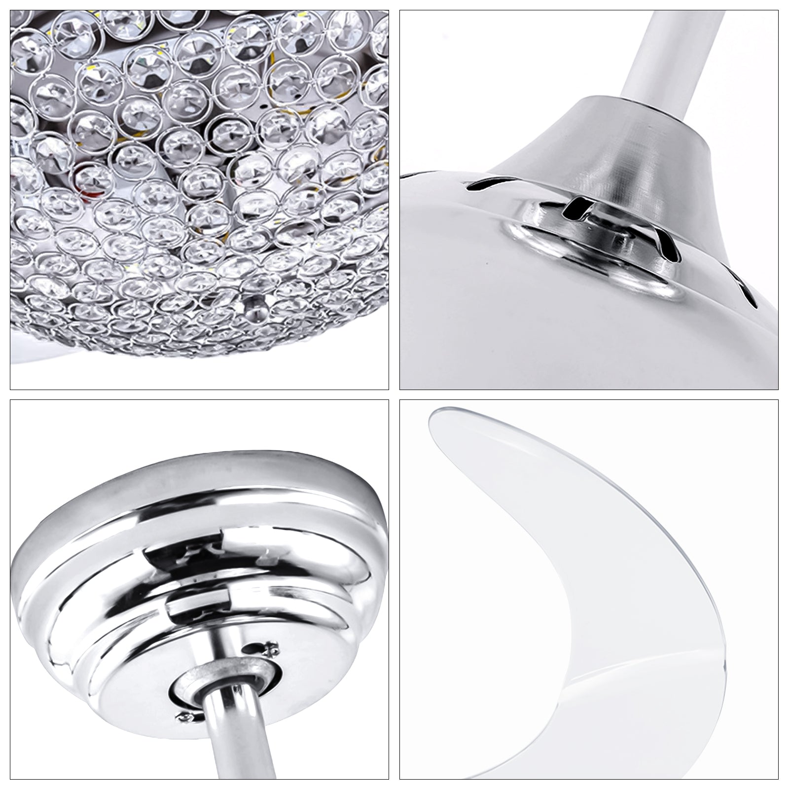 42" Silver Crystal Stealth Ceiling Fan with Light DS-FM75