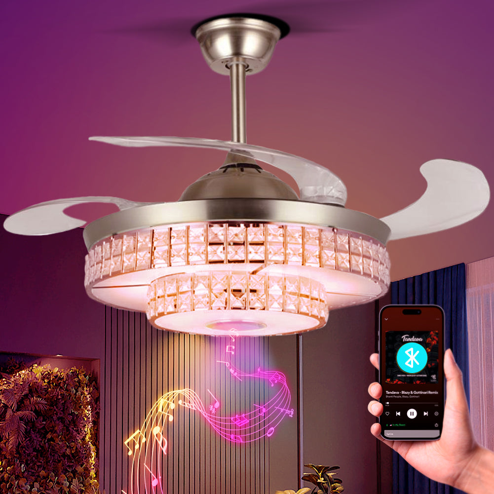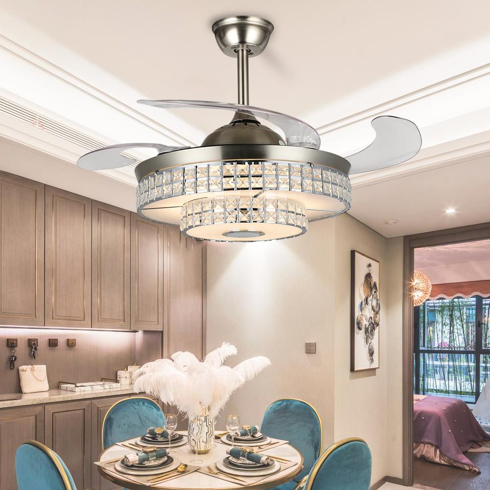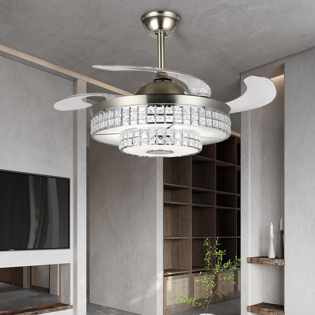 42" Simple Variable Frequency Crystal Bluetooth Ceiling Fan with Light DS-FH20