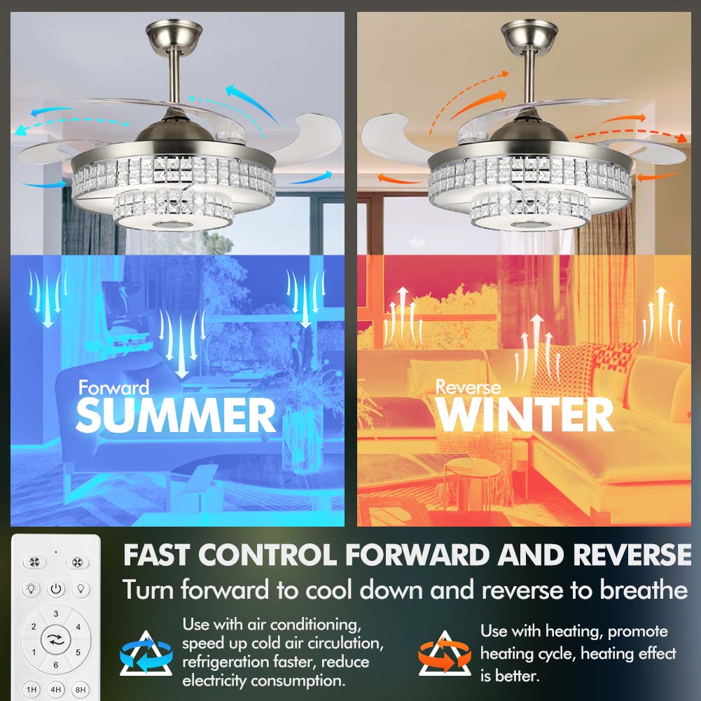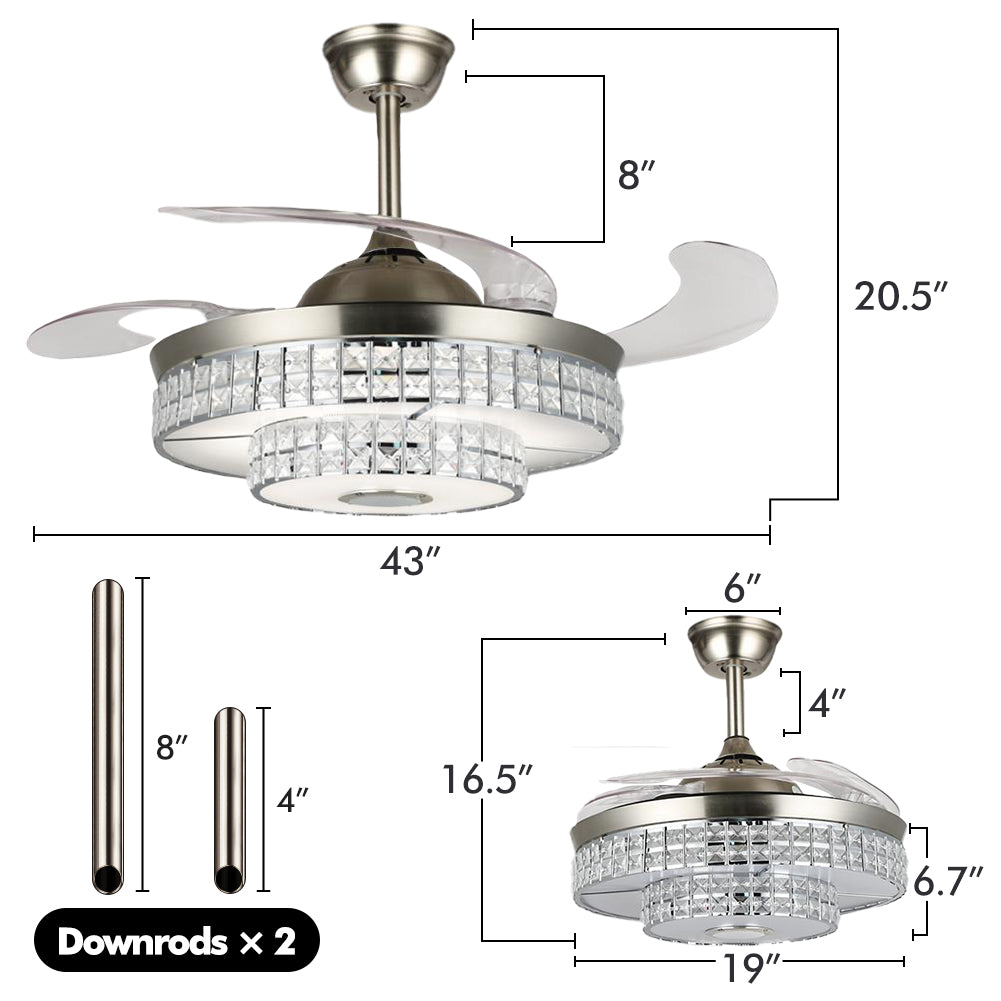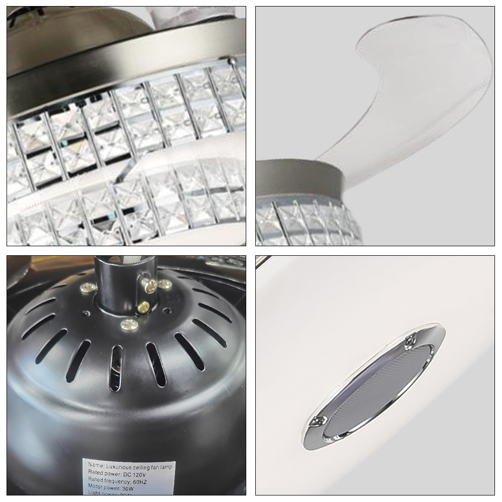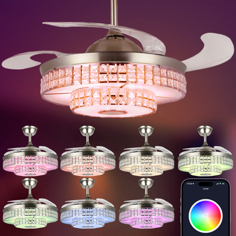 42" Simple Variable Frequency Crystal Bluetooth Ceiling Fan with Light DS-FH20