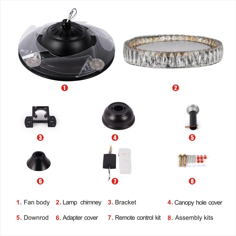 42" Simple Variable Frequency Crystal Ceiling Fan with Light DS-FH21