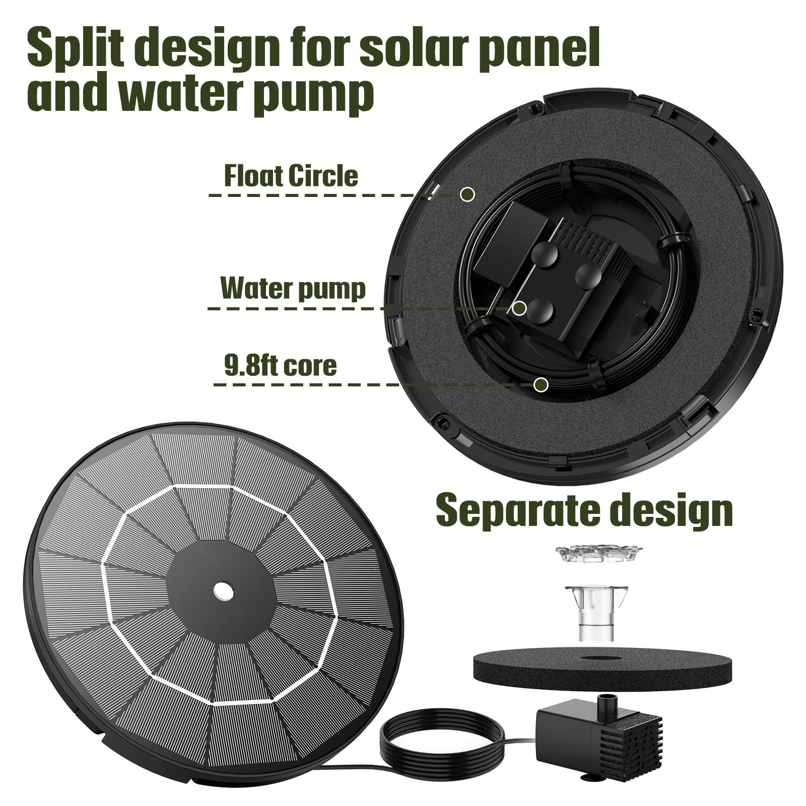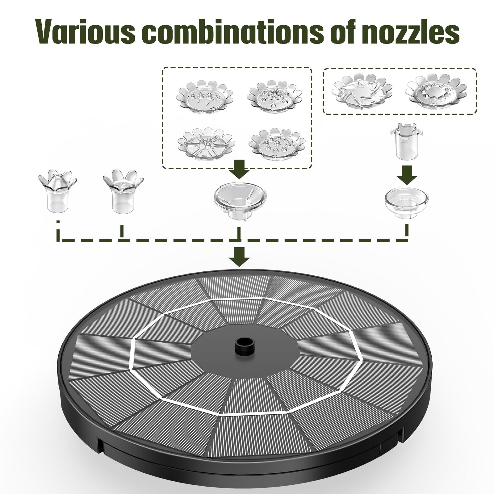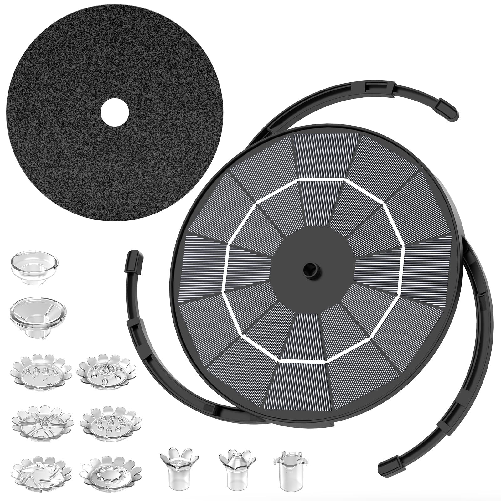 5 Inch Solar Water Pump, 7V/1.7W 200L/h Bird Bath Fountain Pump, w 6 Nozzle, Free Standing Floating Solar Powered Water Fountain Pump for Bird Bath, Garden, Pond, Pool, Outdoor