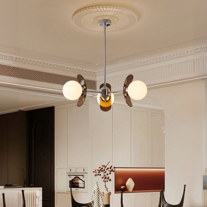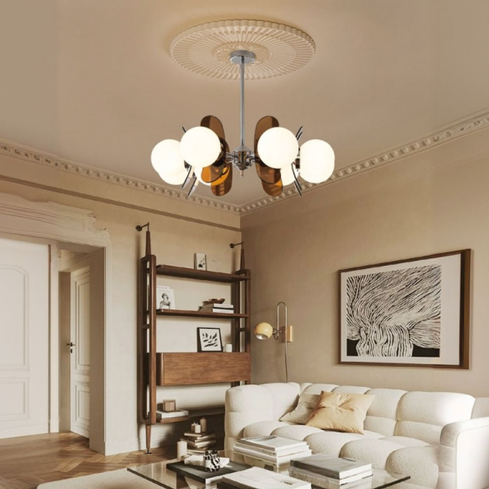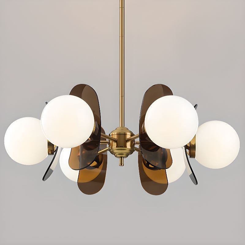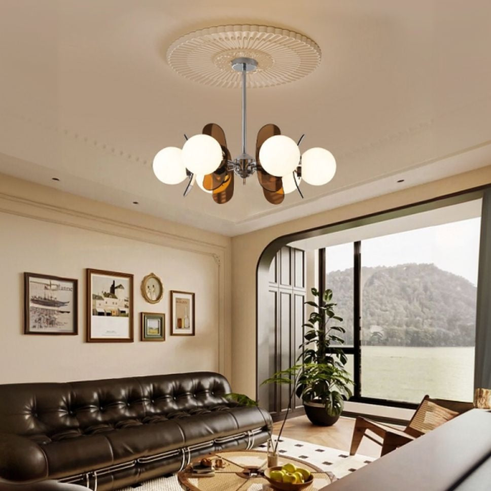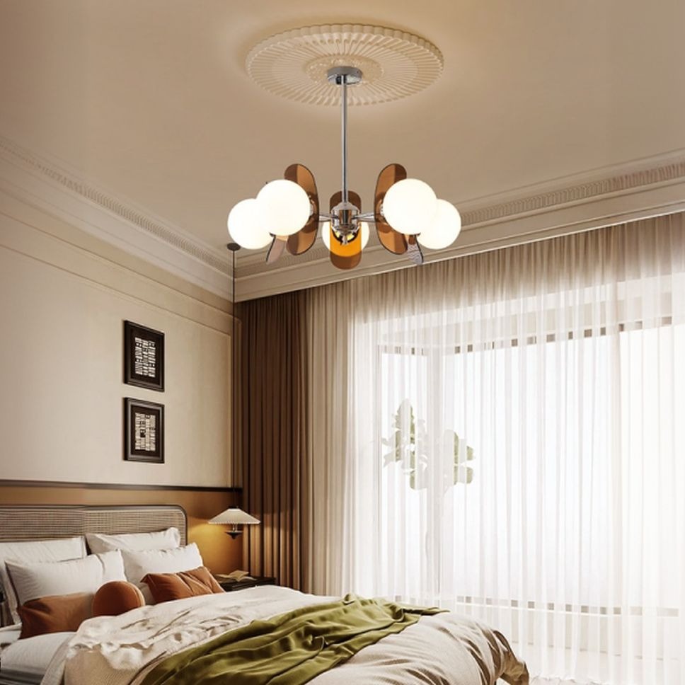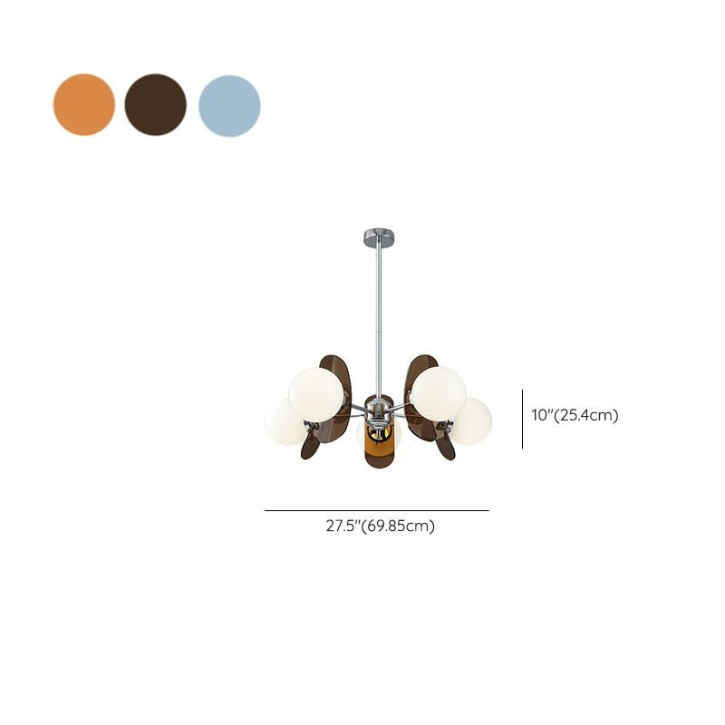 5 Lights Chandelier Light with Ambient Chalk Vitreous Lampshade, Downrods Mounting & Adjustable Height, Orange, 220V-240V DS-SQ34