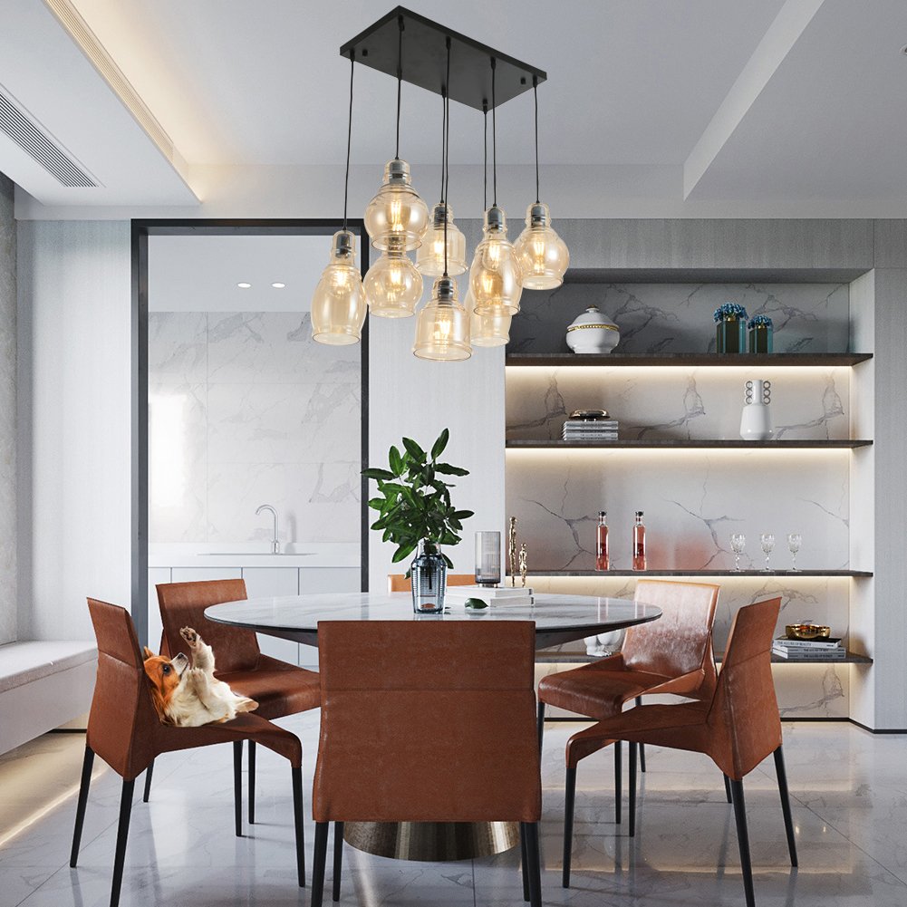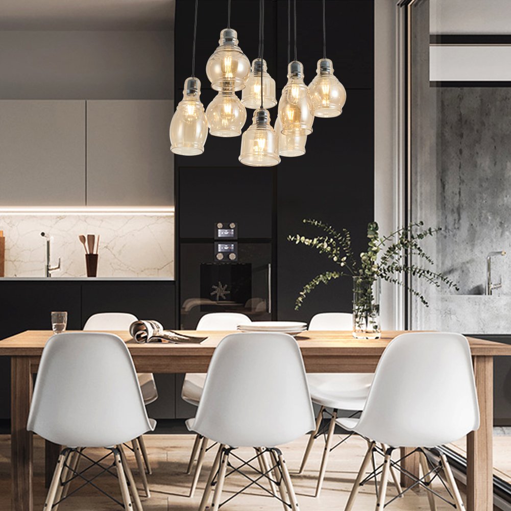 The brandy glass hangs in an eclectic cluster of stars and presents a spacious and bright lighting experience that is excellent for a variety of home design aesthetics. Perfect for adding atmosphere and charm to any space, get this beautiful light fixture installed in your home.