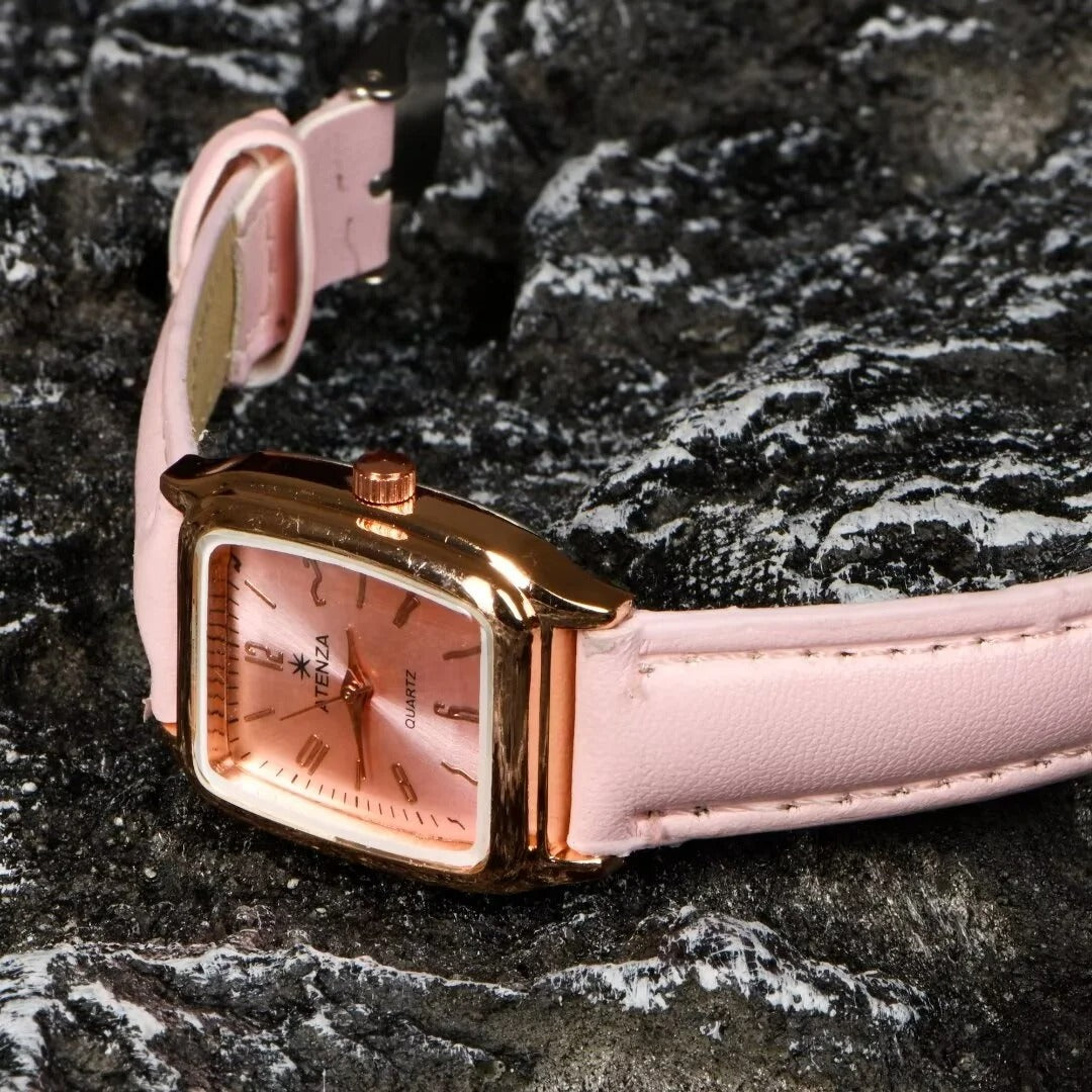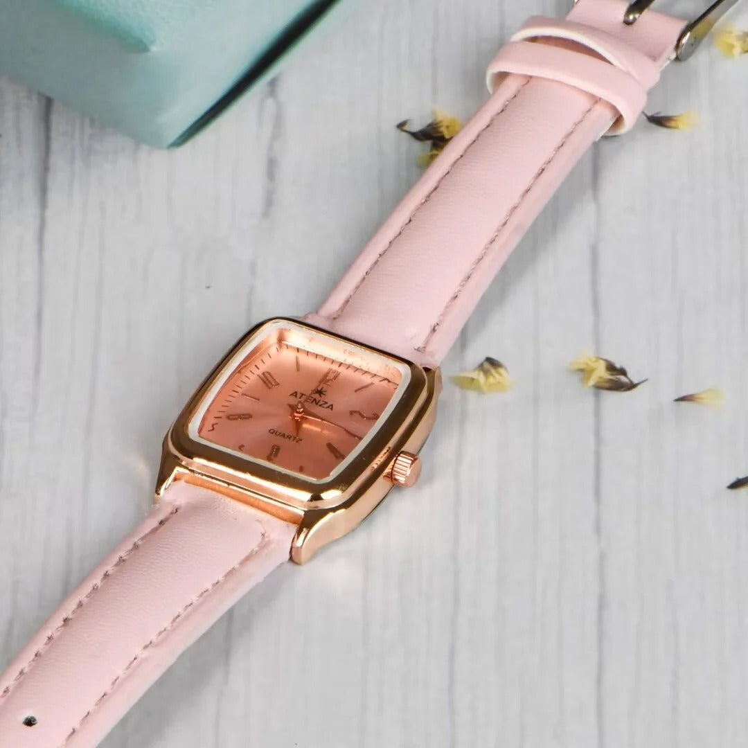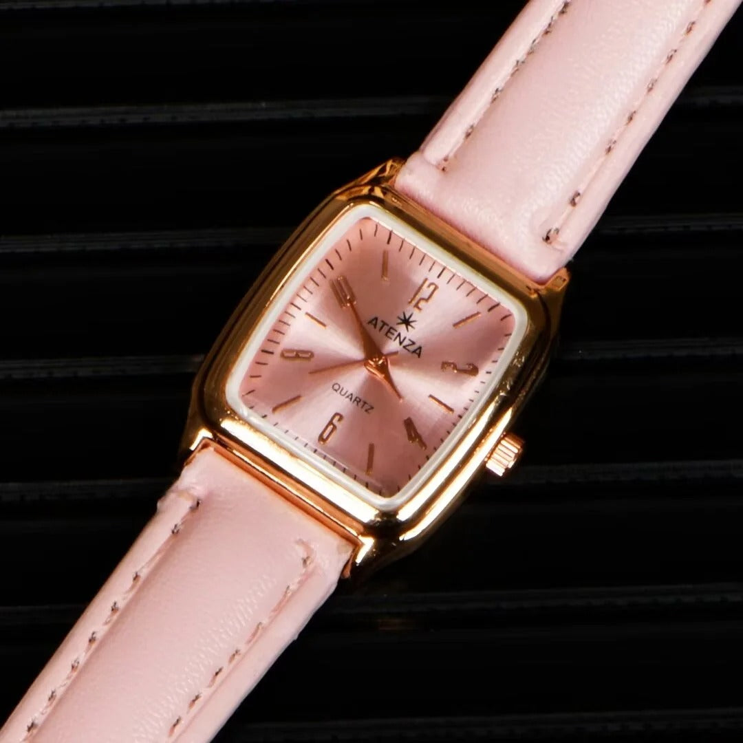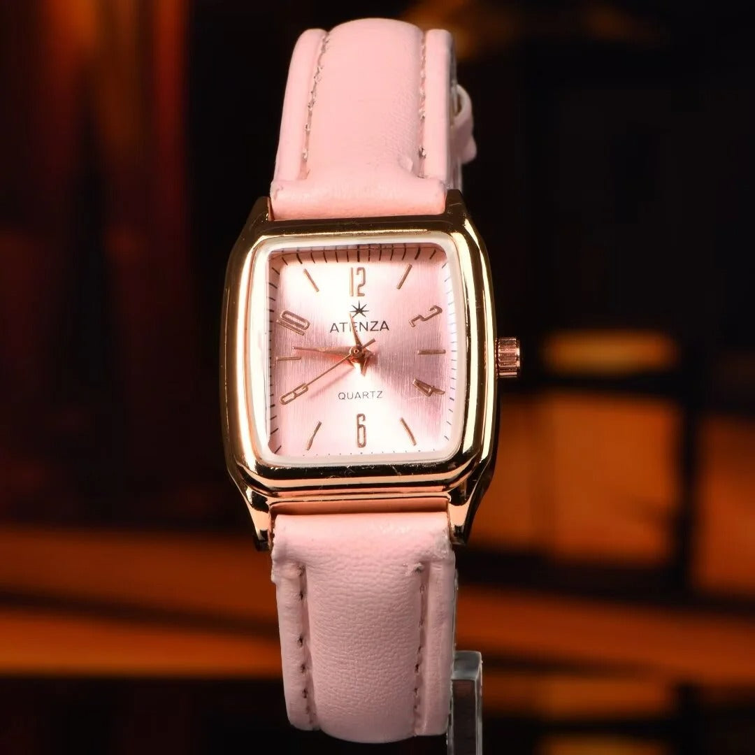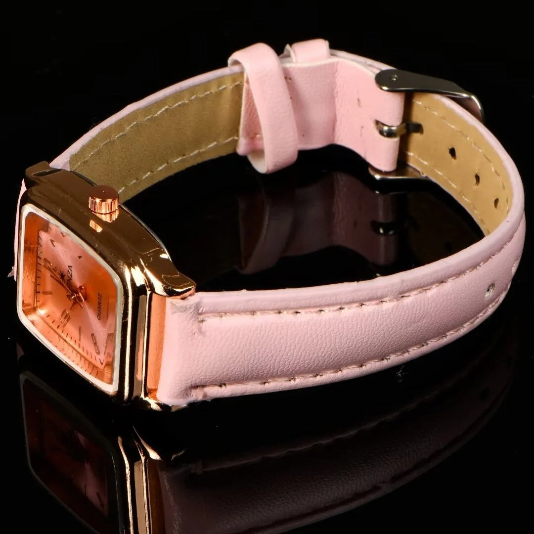 Adjustable Fit Women's Fashion Watch - Pink Square Quartz Watch with Simple Design and Exquisite Leather Strap