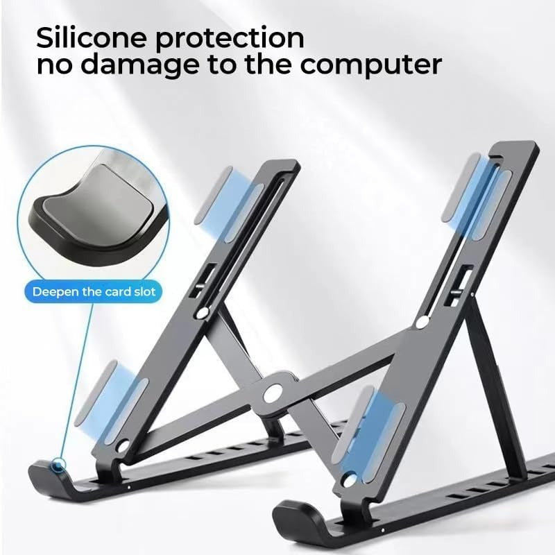 - Non‑slip silicone strip at the bottom of the stand can effectively prevent slipping and can protect your computer.
