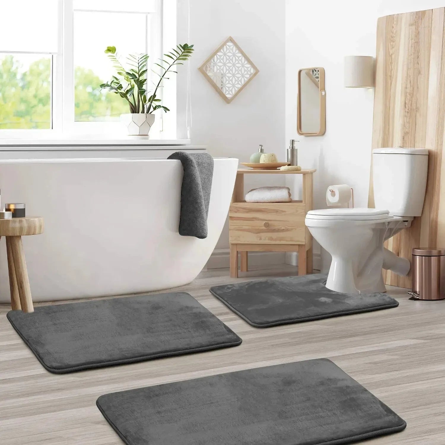Bathroom Rugs Velvet Memory Foam Non-Slip Bath Rugs Machine Wash Dries Quickly