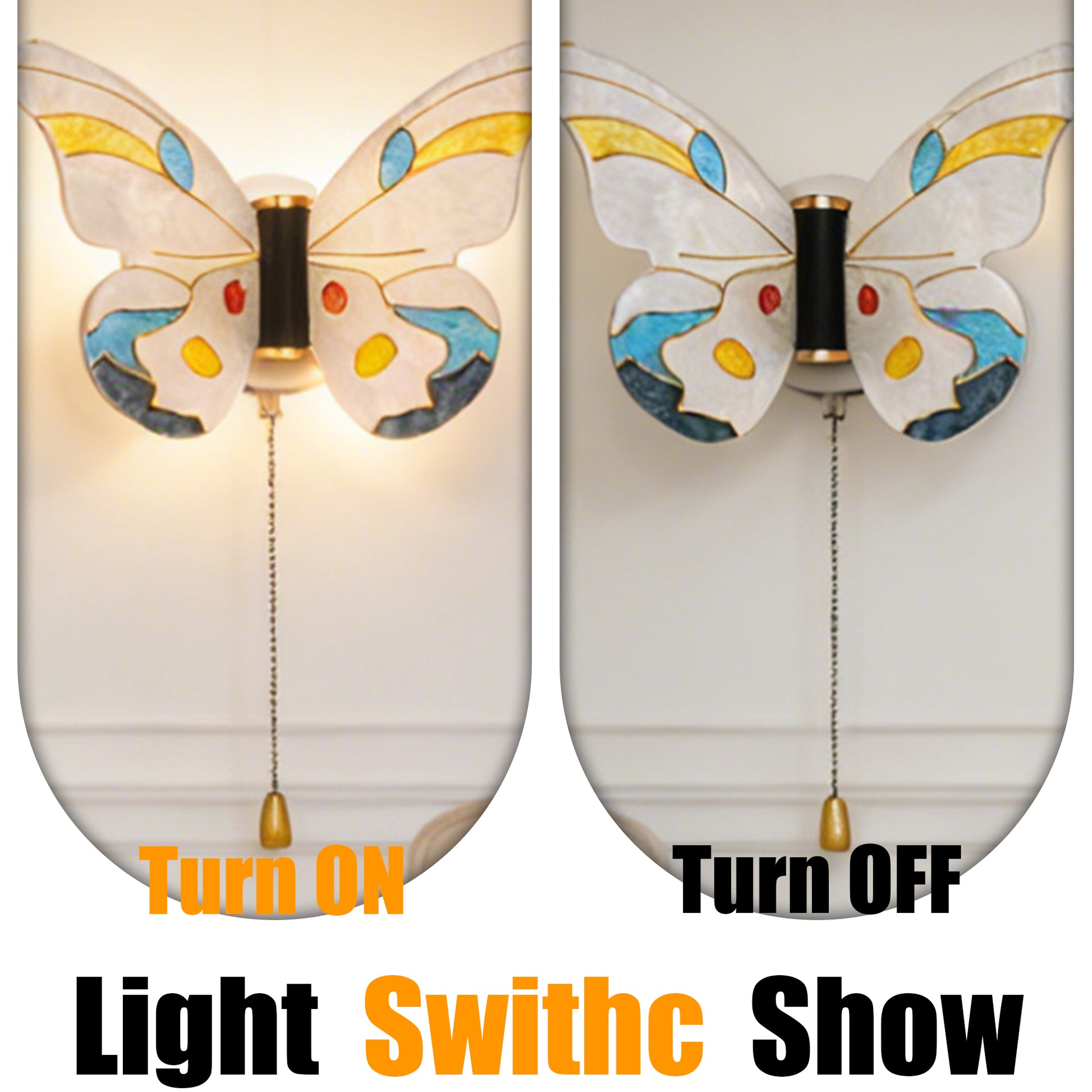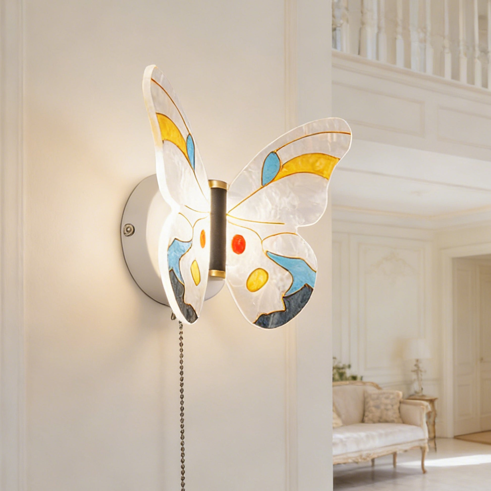 Colorful Butterfly LED Wall Sconce - 3-Color Dimmable Pull Chain Wall Light