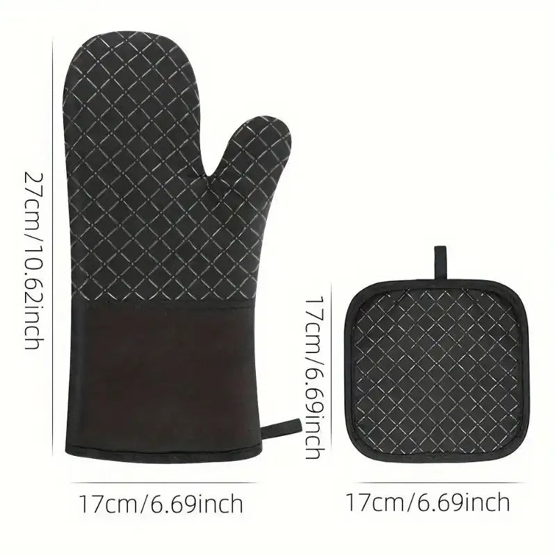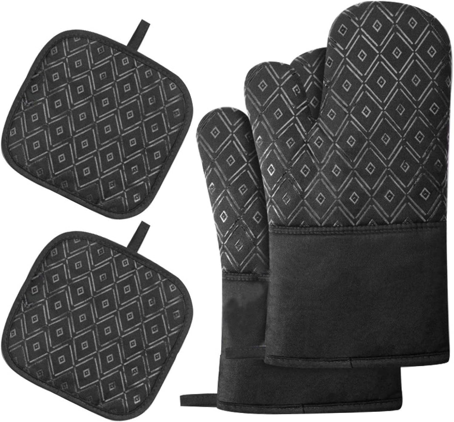 - 2, The insulated glove set is made from a combination of silicone and cotton, which is not only more comfortable, but also has excellent heat resistance up to 230 °C. The gloves are flexible, breathable and have a cross non-slip texture so that you can use them from the oven.