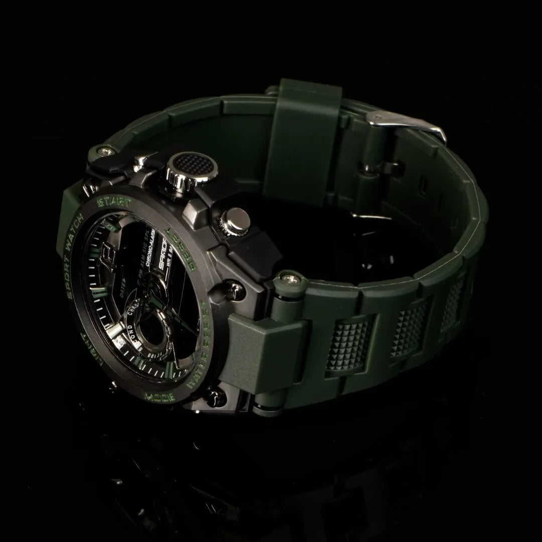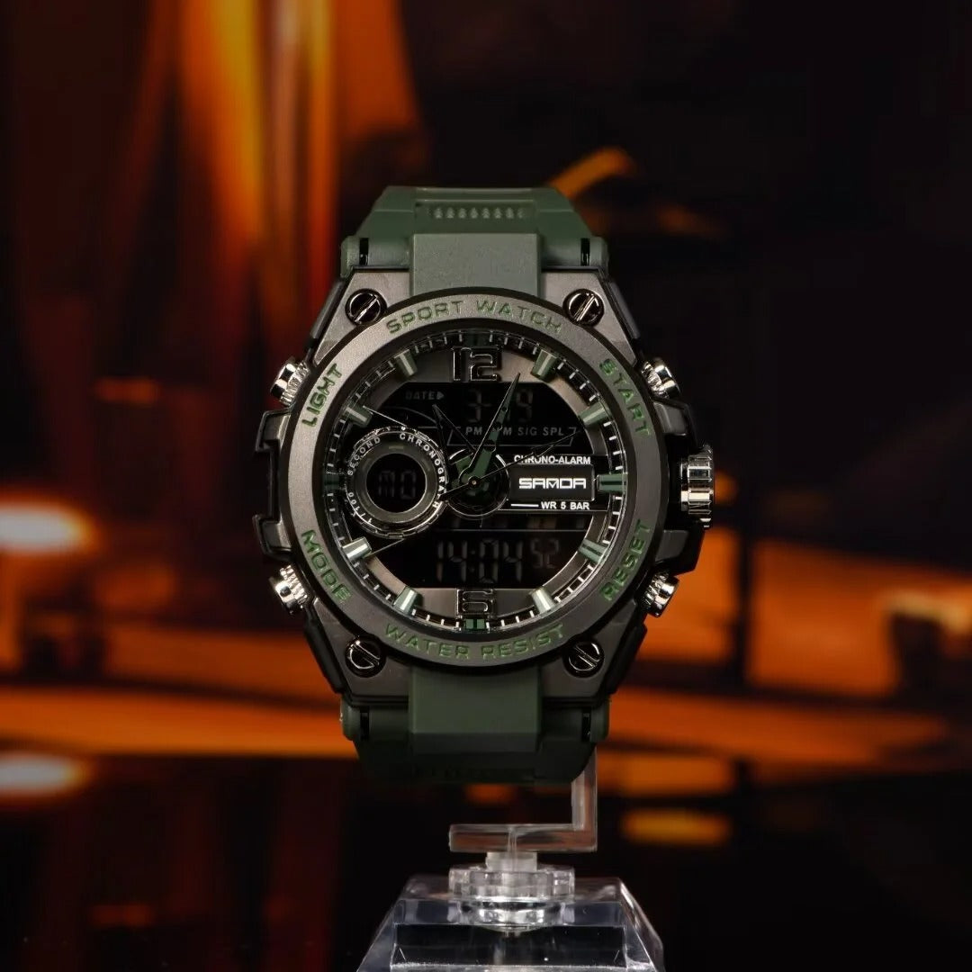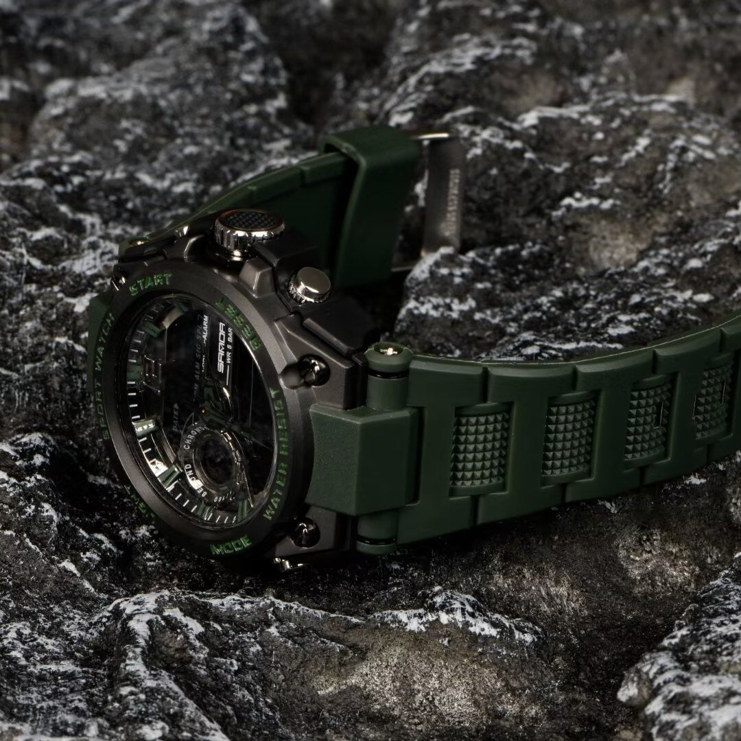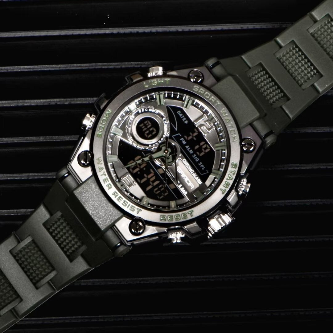 Dark green men's watch sports military 50M waterproof men's watch, dual display sports watch