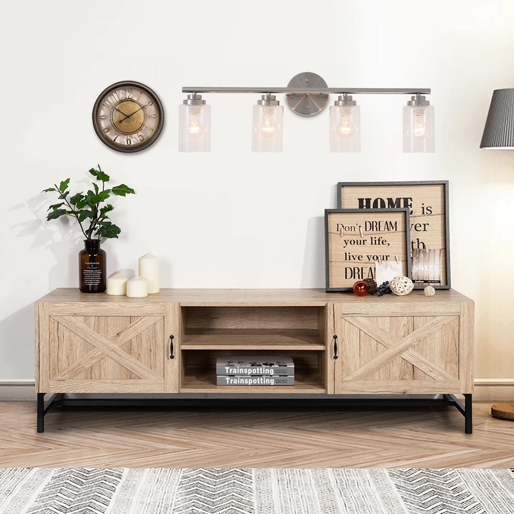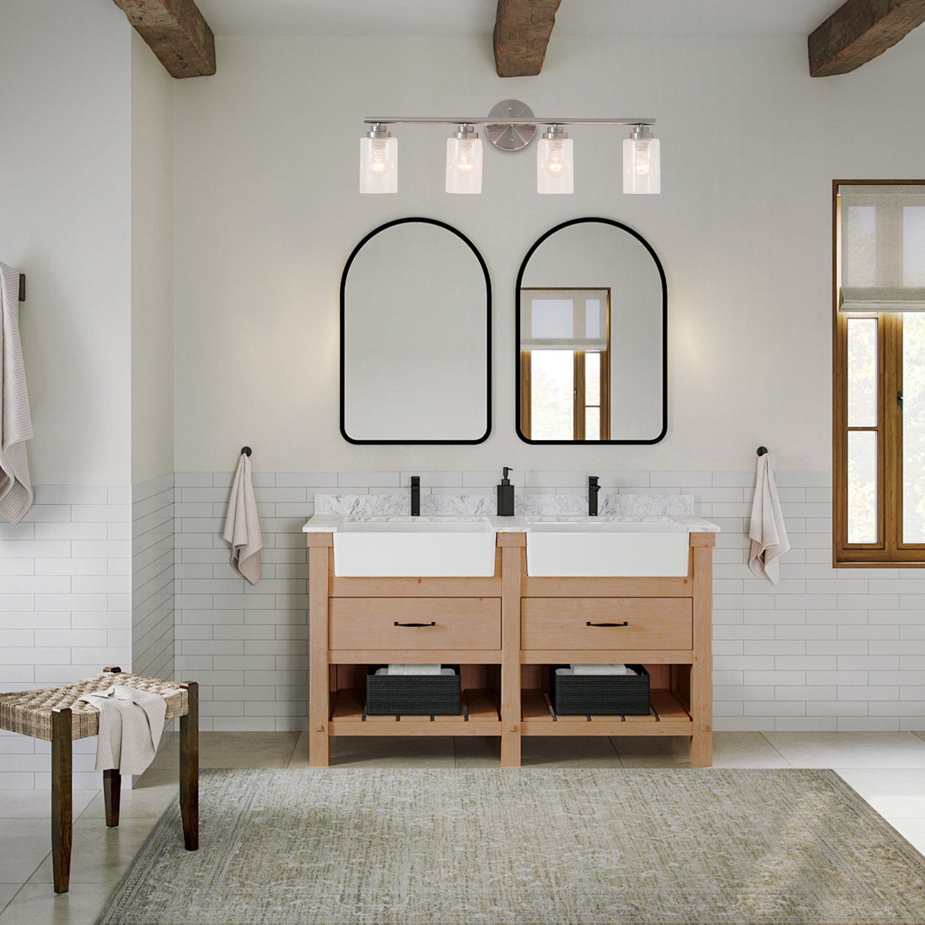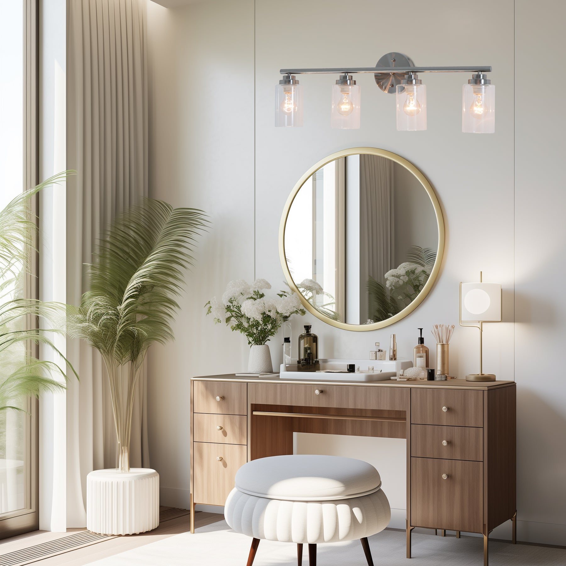 This 31-inch farmhouse chandeliers combines a high quality metal finish with clear glass shades and rustic wood elements, offering a stylish and versatile look that complements both modern and farmhouse decor. 4-light farmhouse pendant lighting perfect used in kitchen island, dining room, kitchen, dining table,