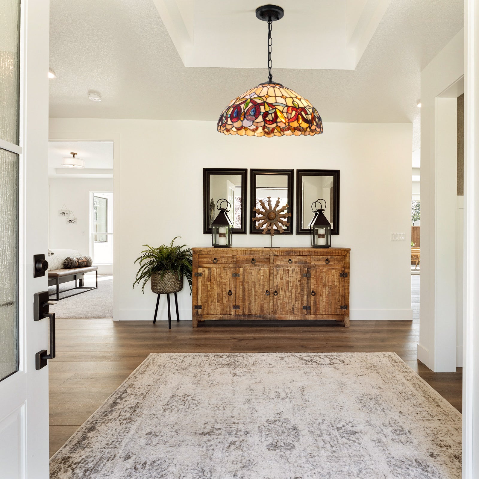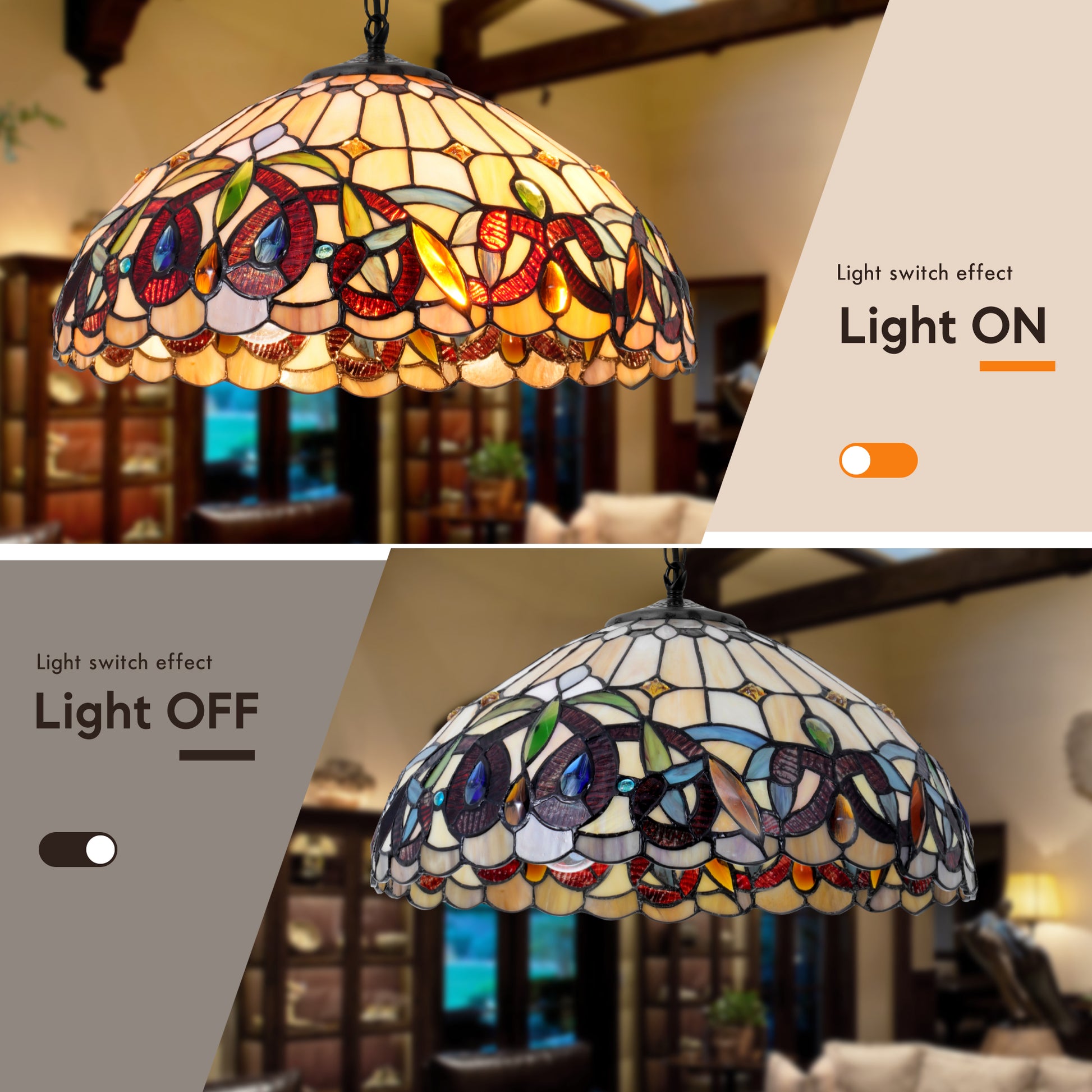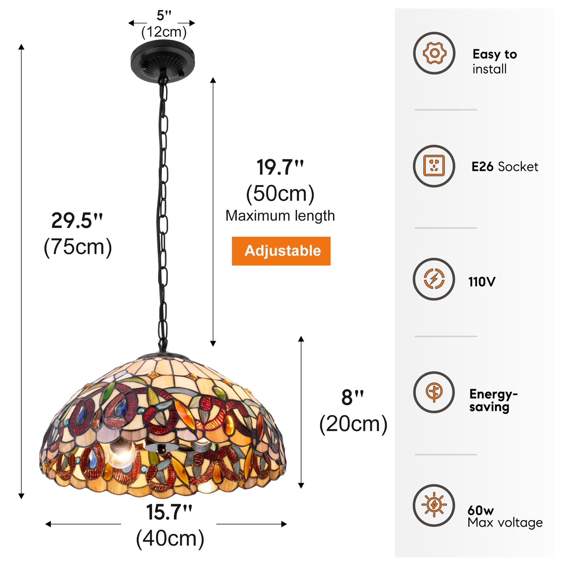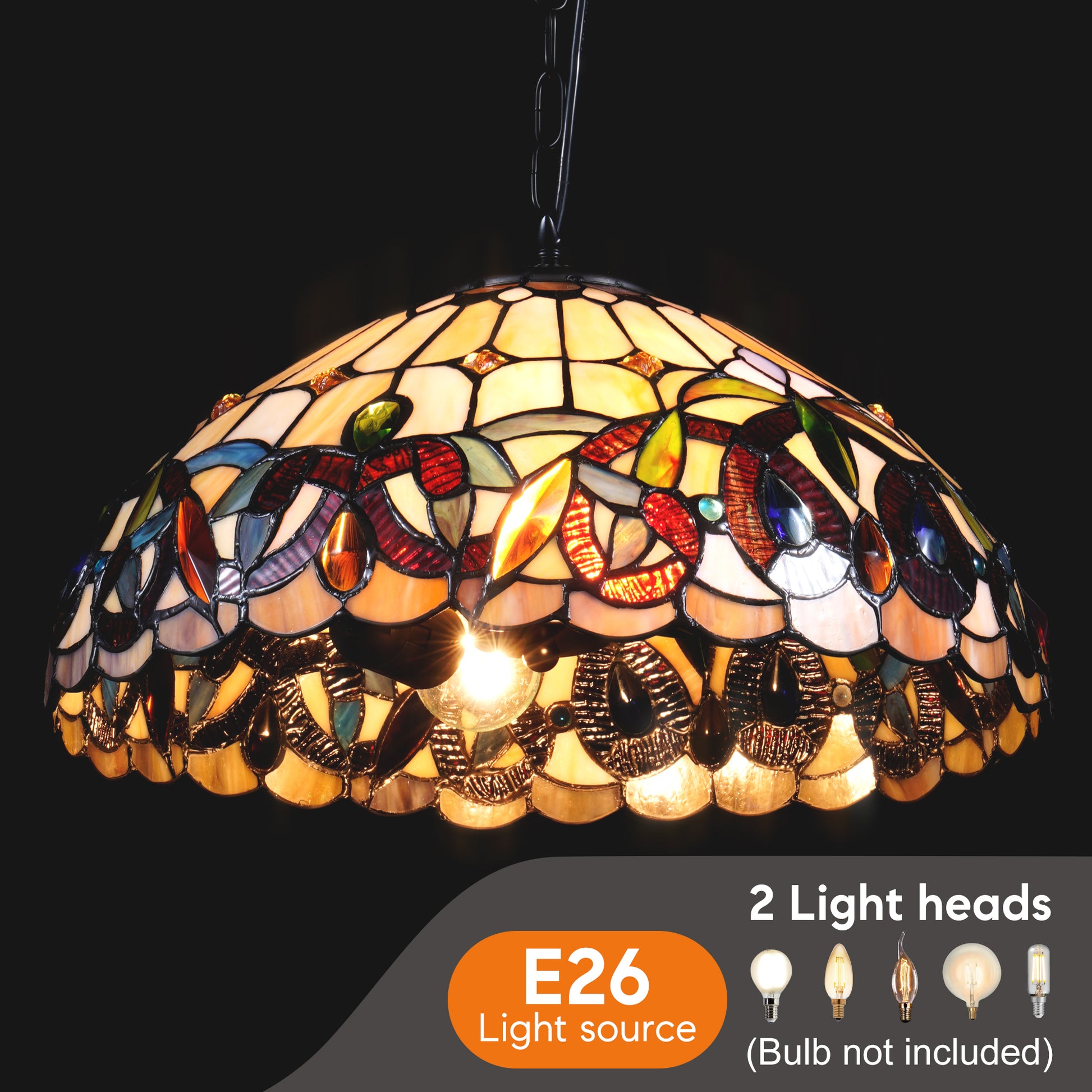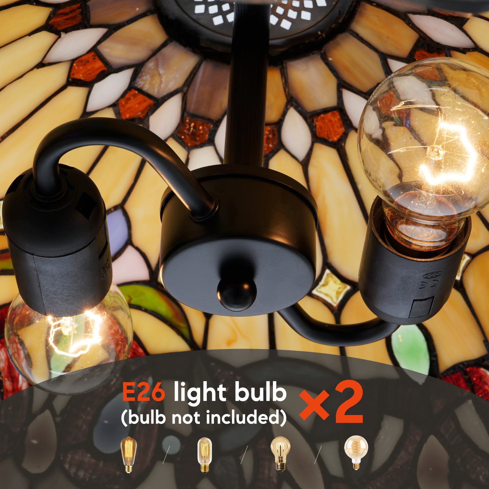 This Tiffany-style pendant accommodates standard E26 x2 base bulbs up to 60 watts. You can choose from LED, CFL, or incandescent bulbs to achieve your preferred lighting effect - the stained glass will beautifully diffuse the light, enhancing the vintage aesthetic.