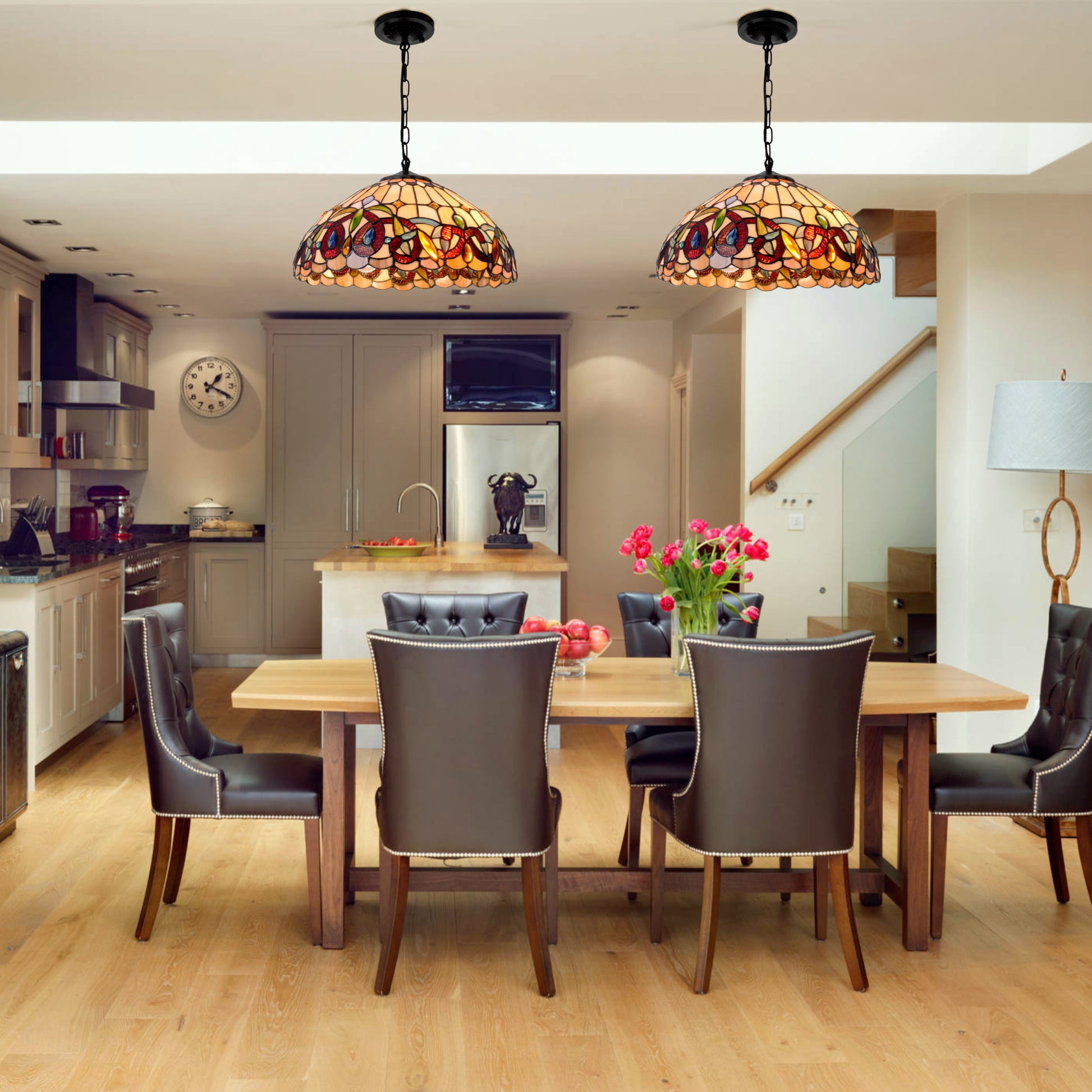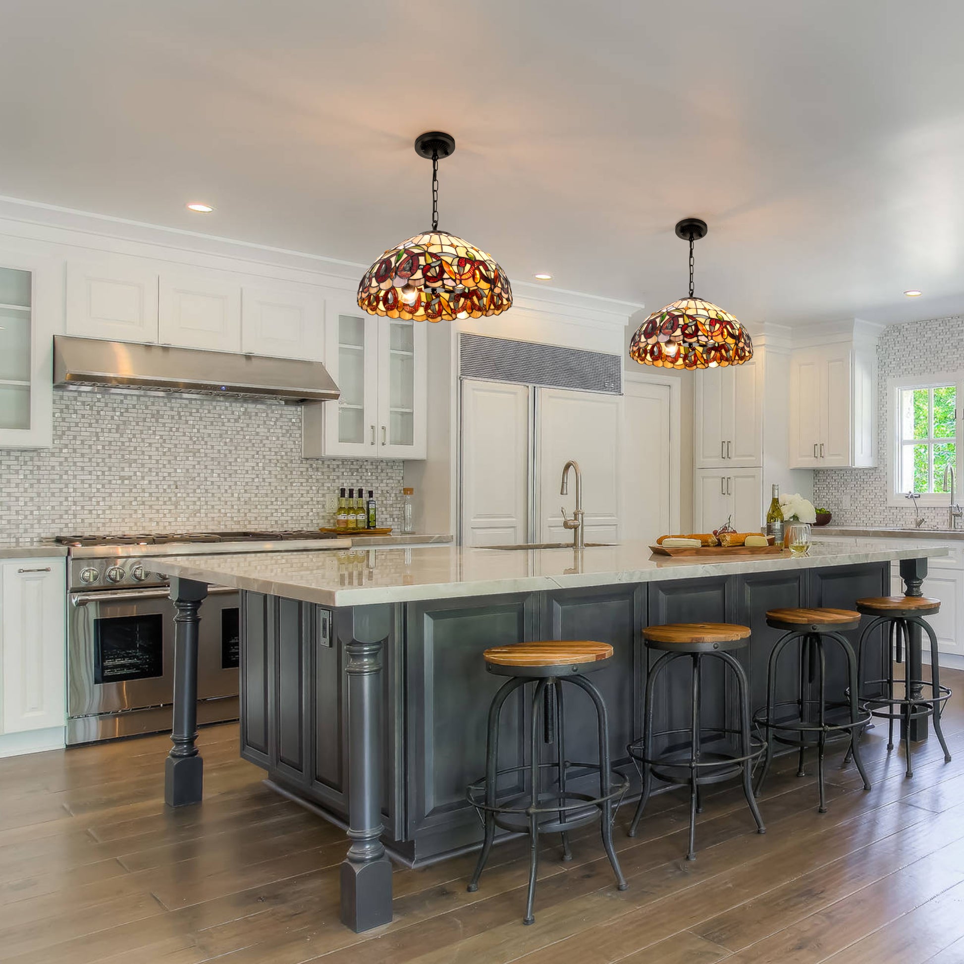 The 2 light bulbs(bulb not included) nestled within the hand-cut stained glass shade cast a comforting, radiant glow, making this pendant light an ideal choice for kitchens, dining rooms, living spaces, foyers, and more. It also makes a thoughtful housewarming, birthday, or holiday gift.
