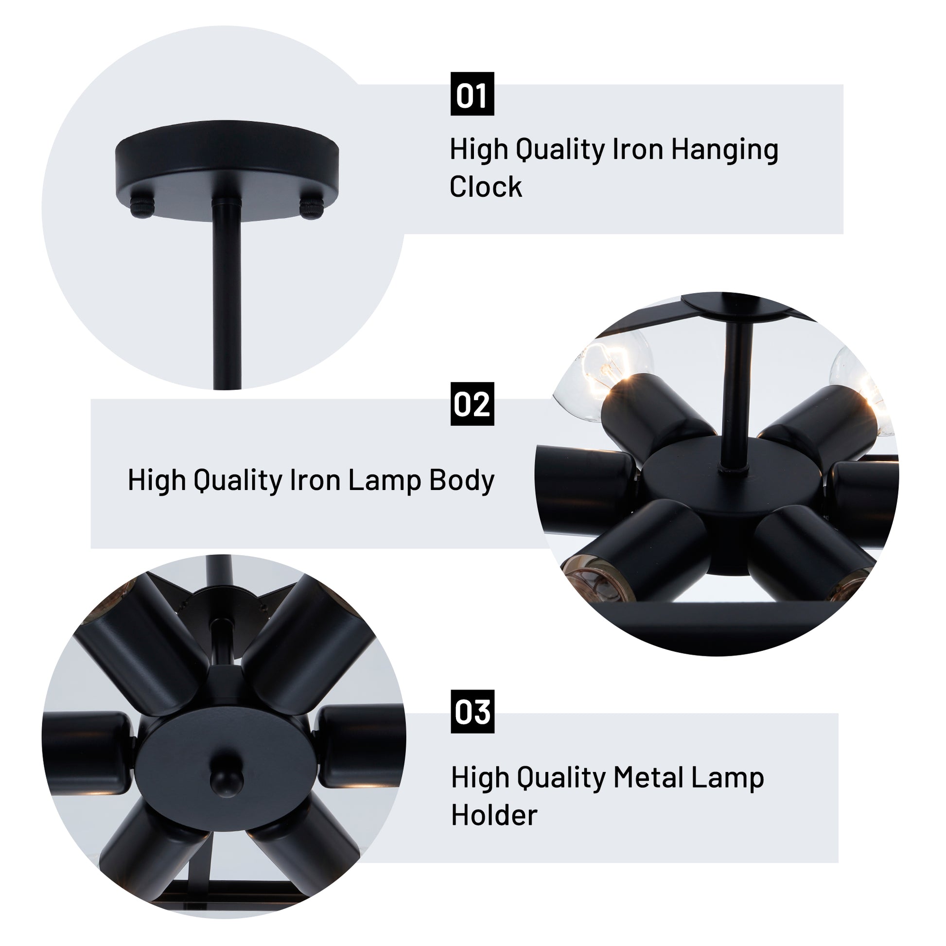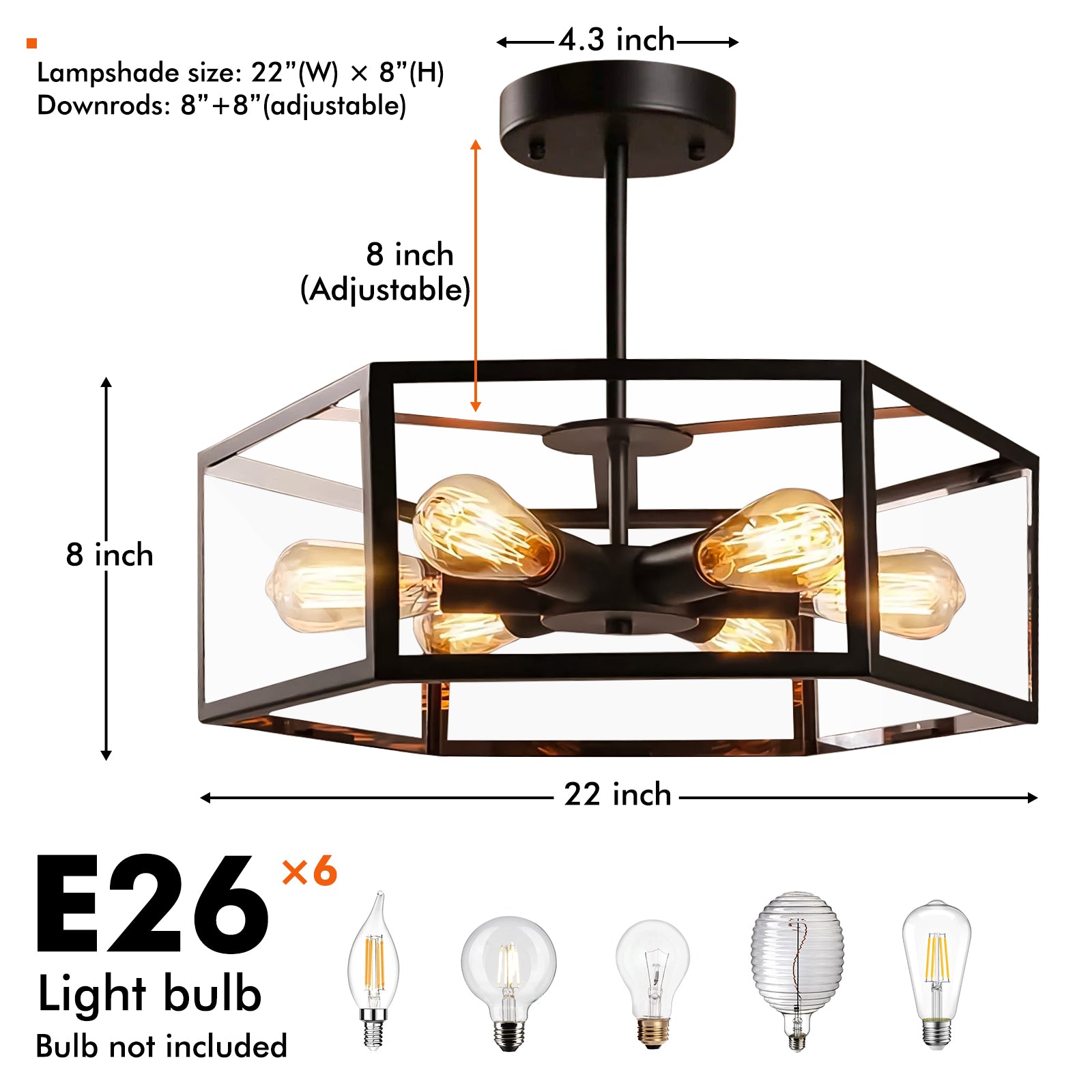 The chandelier has x6 E26 base sockets, allowing you to use a variety of bulb types, including LED, CFL, incandescent, and fluorescent (40W max). Mix and match bulb styles and color temperatures to create your desired ambiance.
