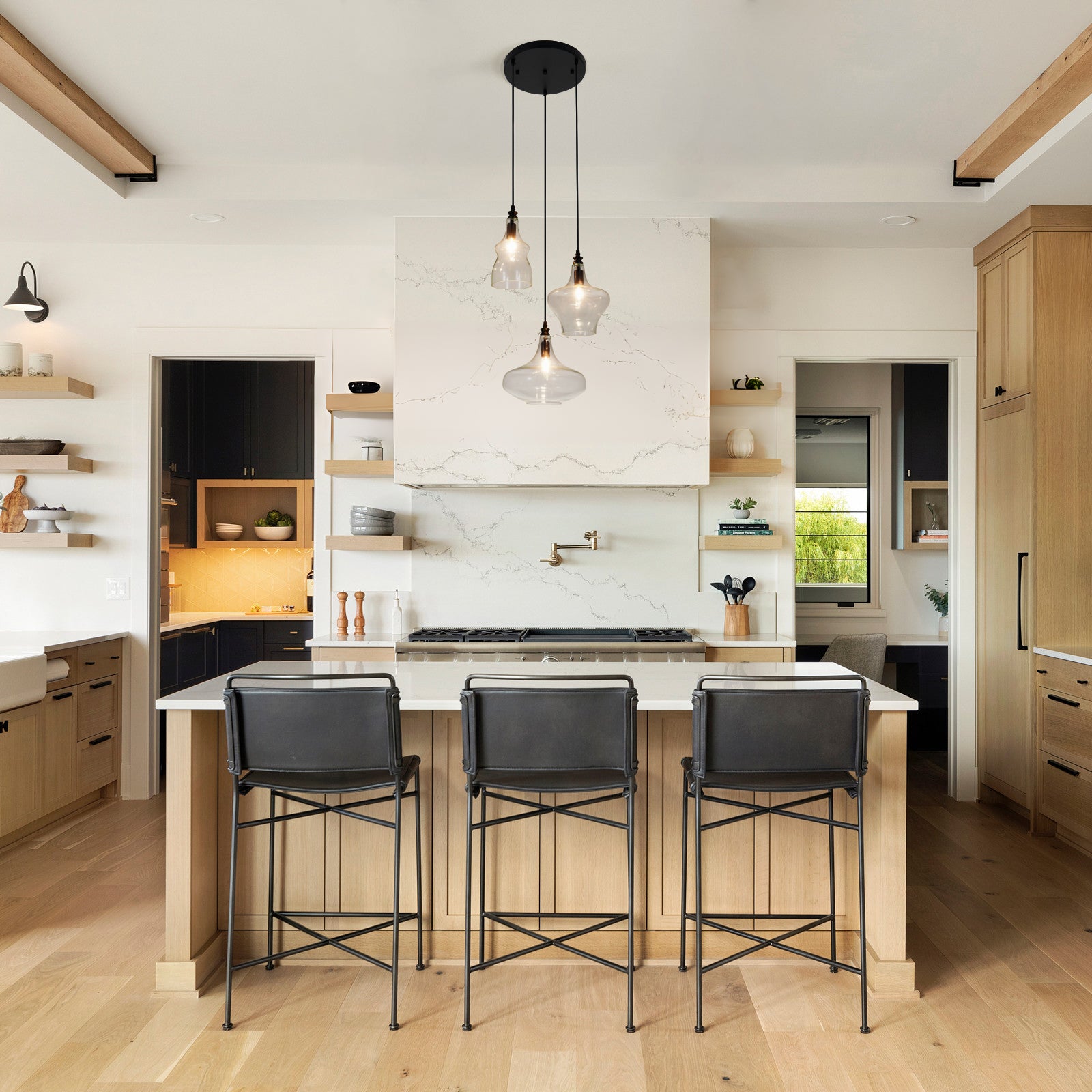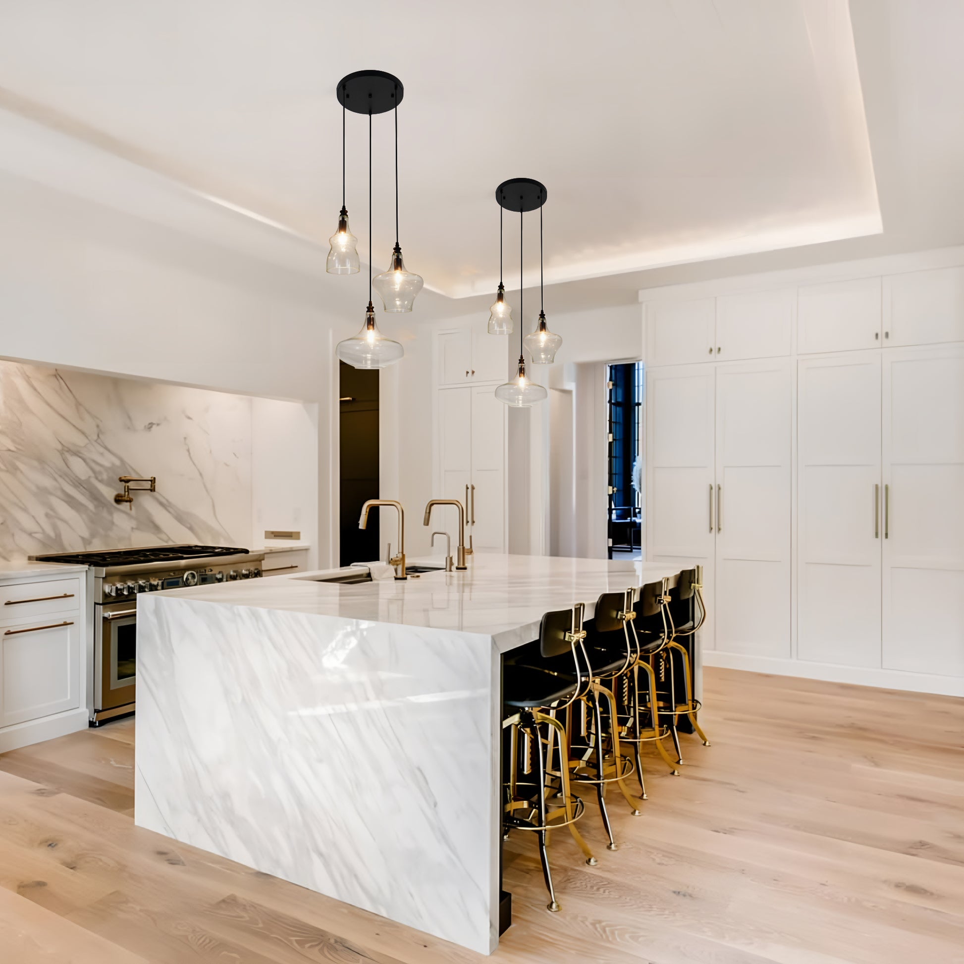 The simple, stylish glass pendant is perfect for adding a cozy, elegant touch to any room. It's ideal for kitchen islands, dining rooms, bedrooms, bathrooms, bars, hallways, foyers, living rooms, staircases, and more.