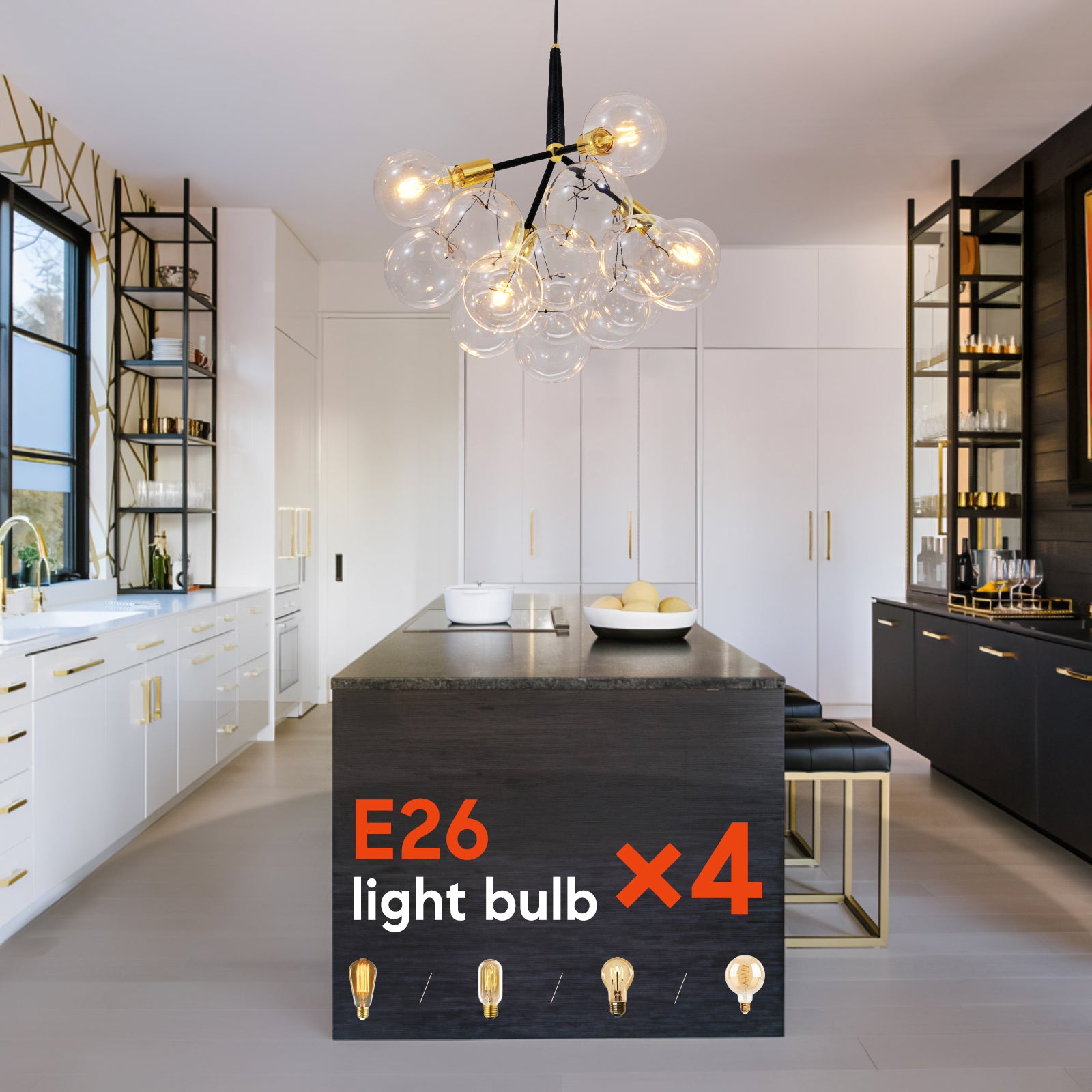 Requires 12 E26 Bubble Bulbs, fully dimmable with a compatible switch.