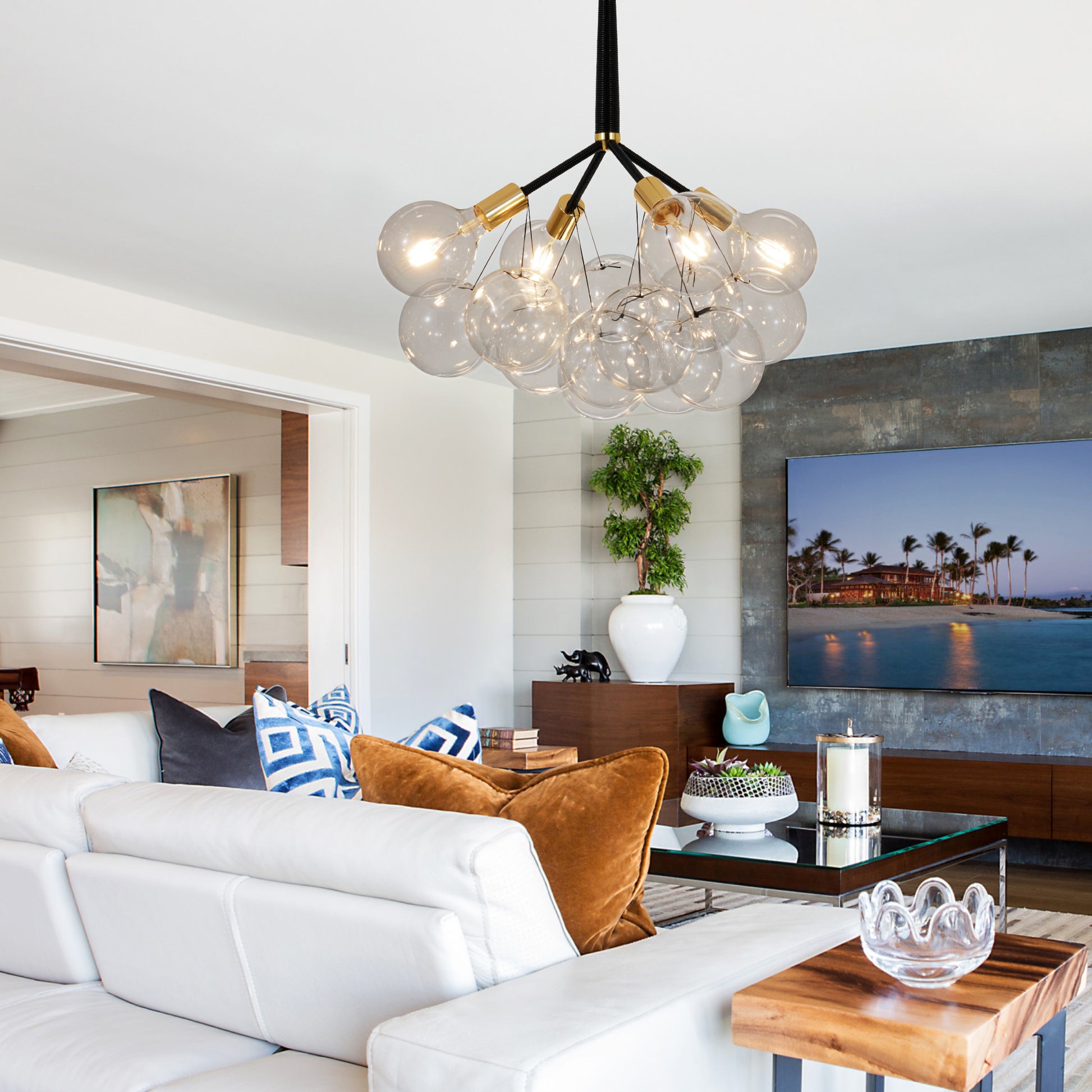 Featuring an array of glass bubbles, this chandelier creates a captivating visual effect, perfect for enhancing the ambiance of any room.