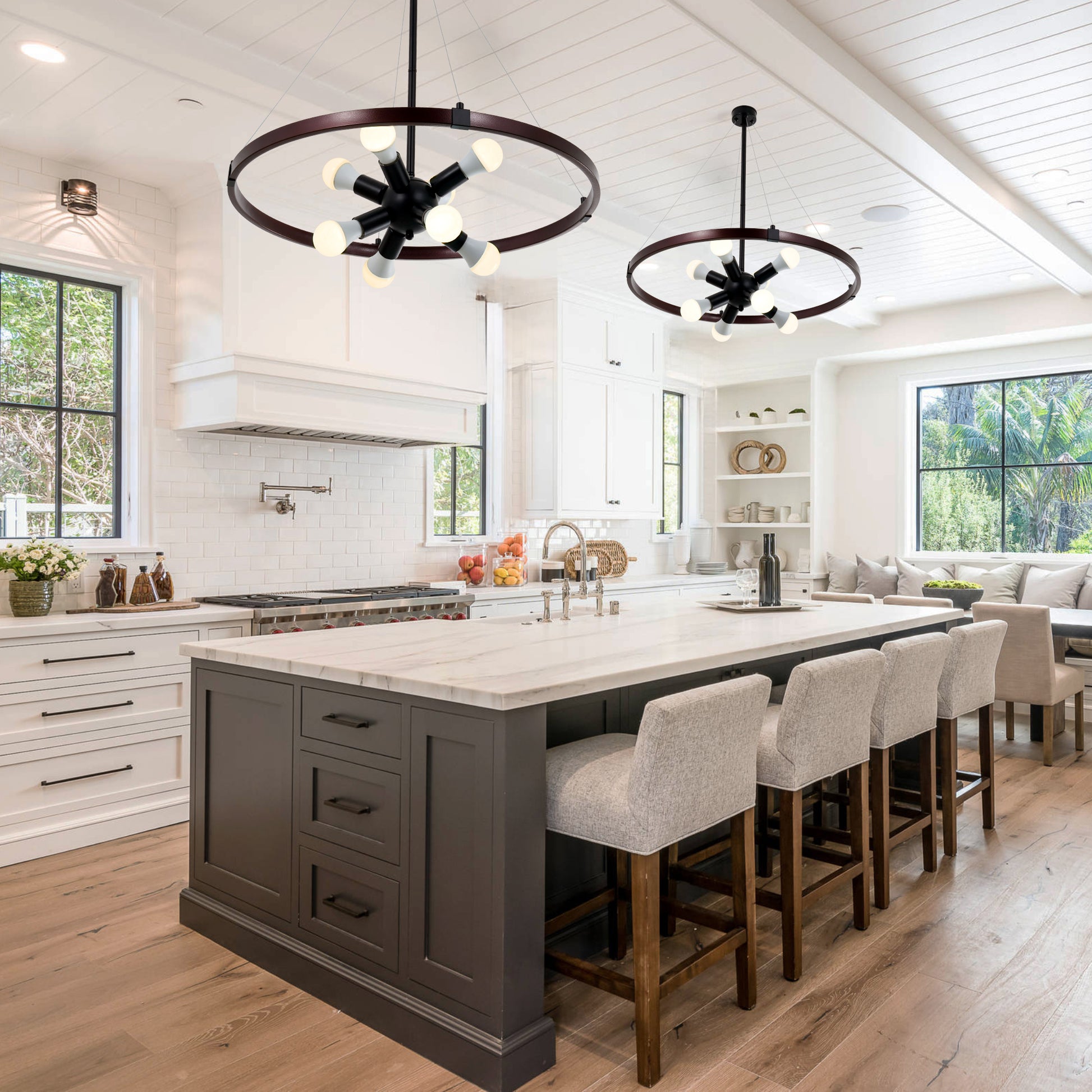 The chandelier includes all necessary hardware and instructions for easy installation on flat, sloped, or vaulted ceilings. The 59-inch metal chain is adjustable to your desired length.