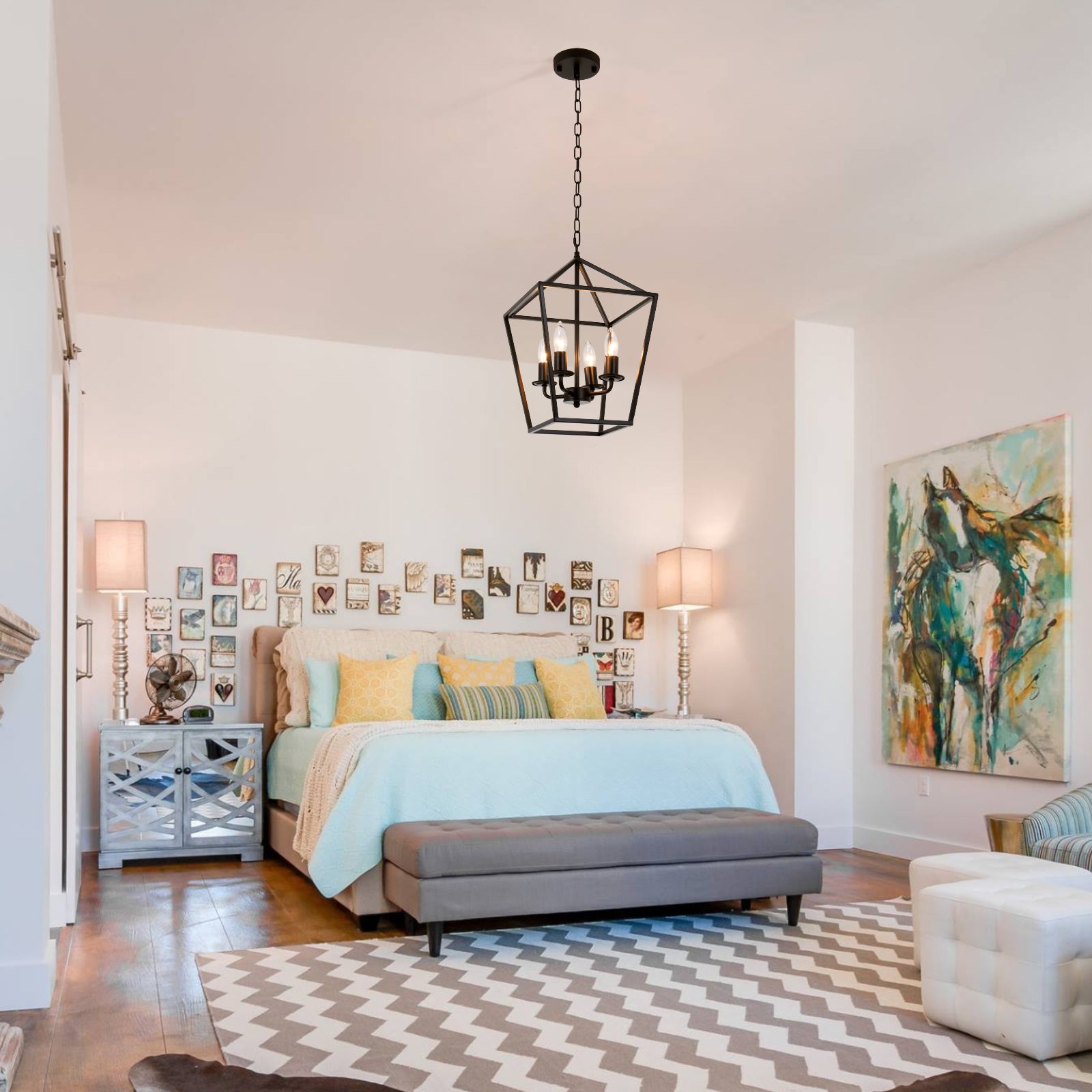 The chandelier includes all necessary hardware and instructions for easy installation on flat, sloped, or vaulted ceilings. The 59-inch metal chain is adjustable to your desired length.