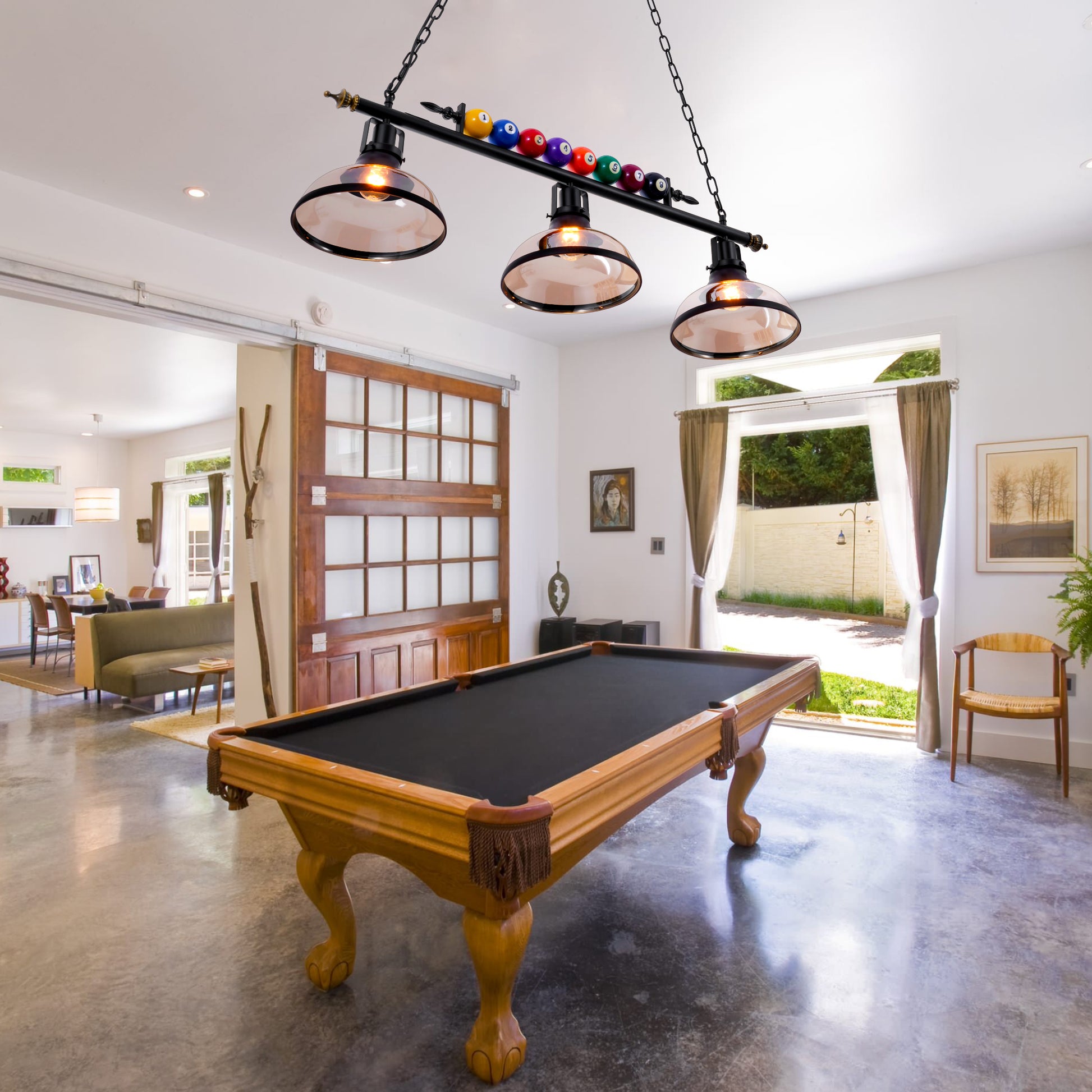 - 3 light island chandeliers are widely used in billiard rooms, game rooms, bars, restaurants, cafes, restaurant, clubs, and other spaces.