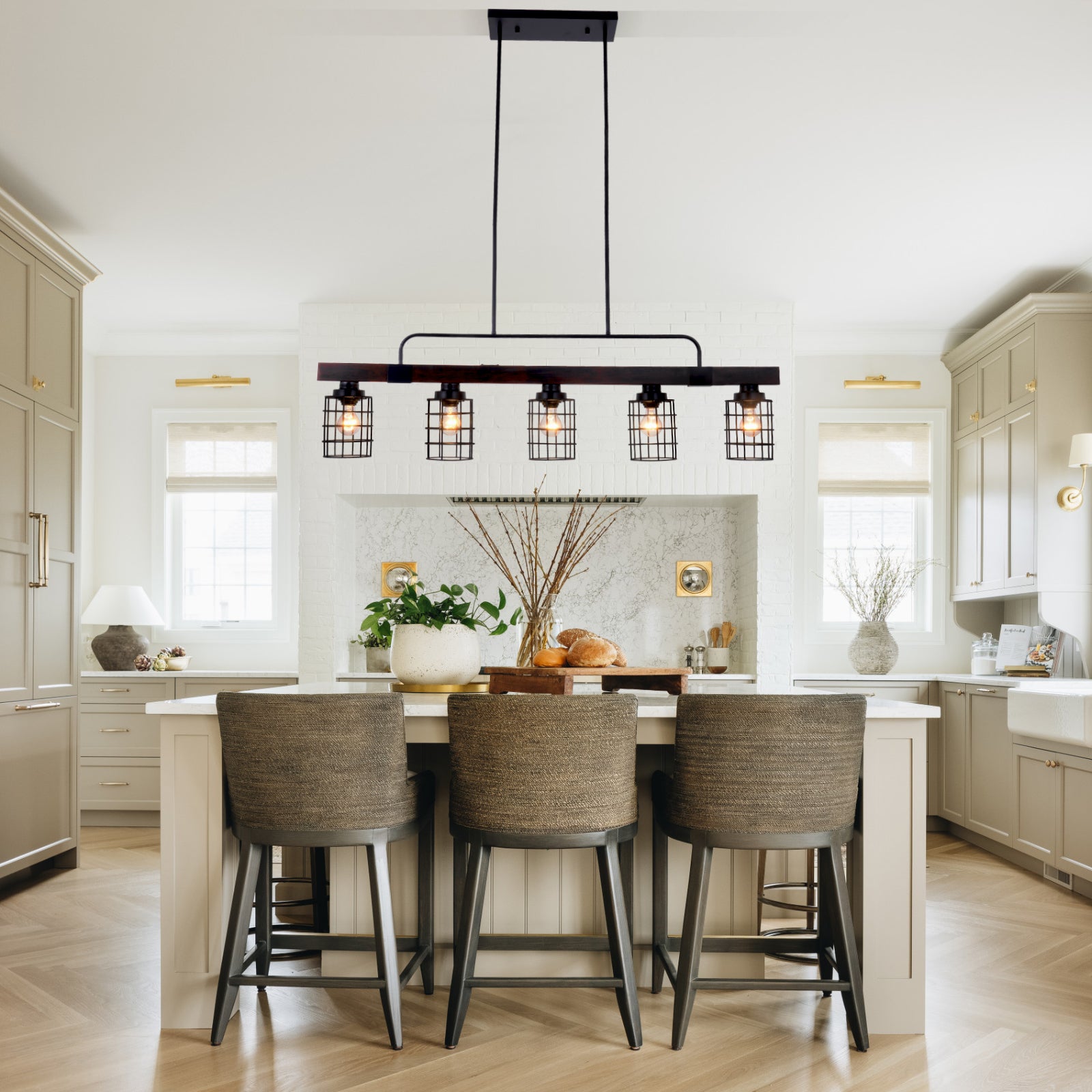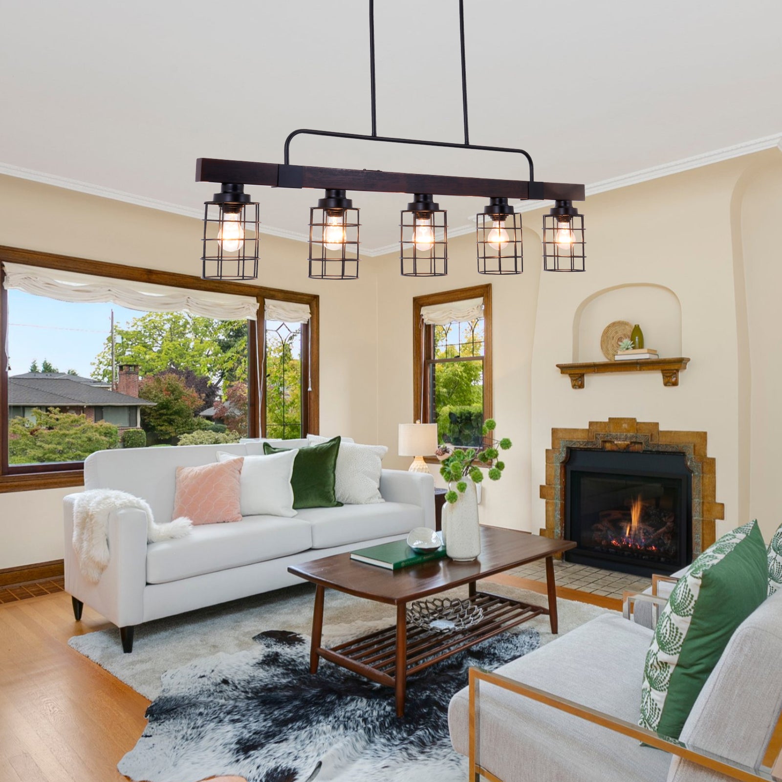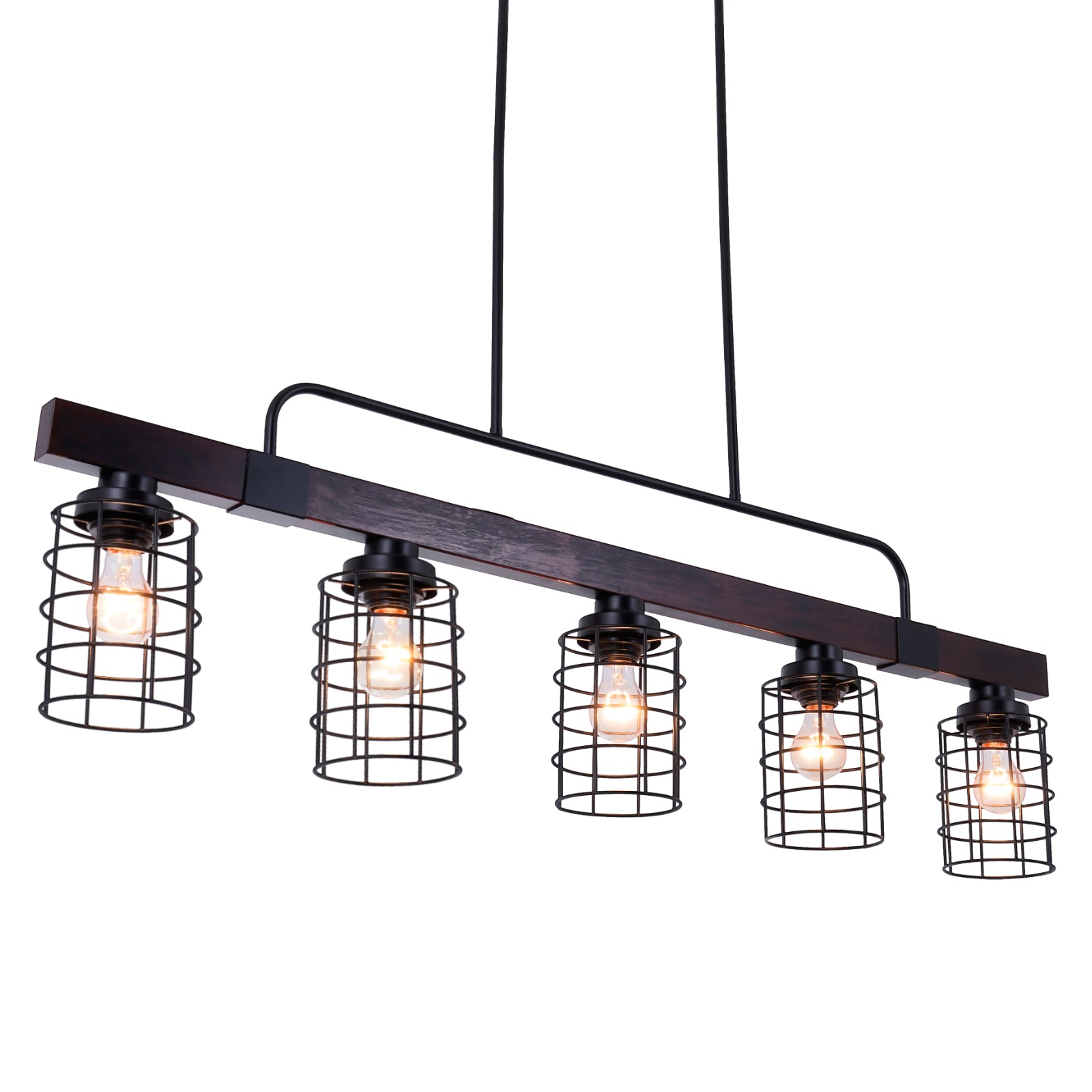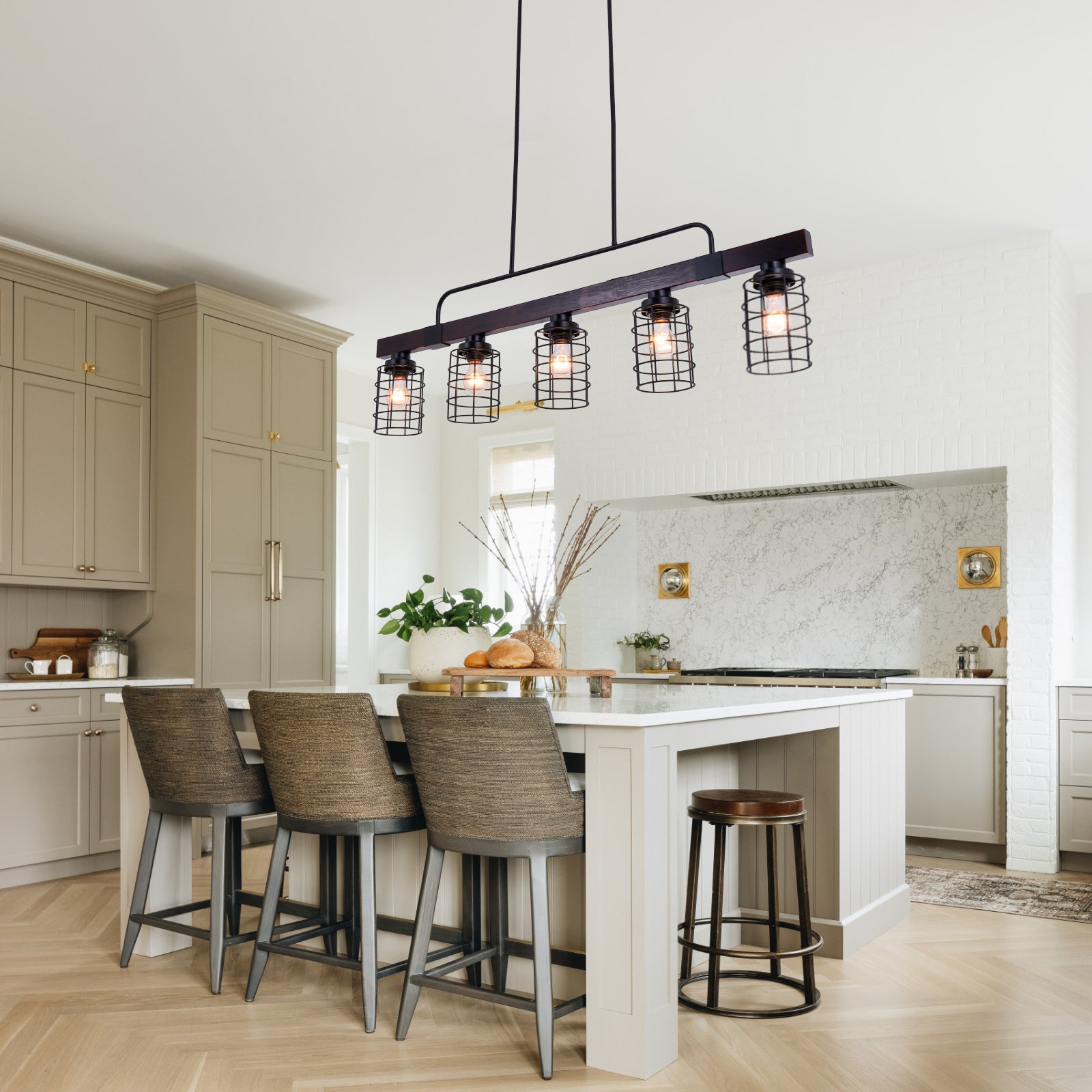 Giluta Industrial Linear Kitchen Island Light, 5-Light Farmhouse Chandelier with Rustic Metal Mesh Cage, Pendant Lighting Fixture for Kitchen Island Dining Room Pool Table Living Room DS-DY69