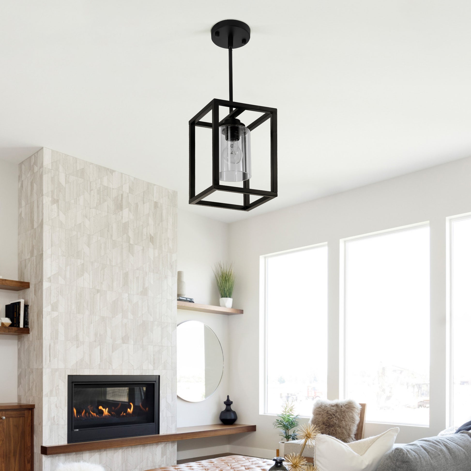 1-Light Black Farmhouse Chandelier (DY77)