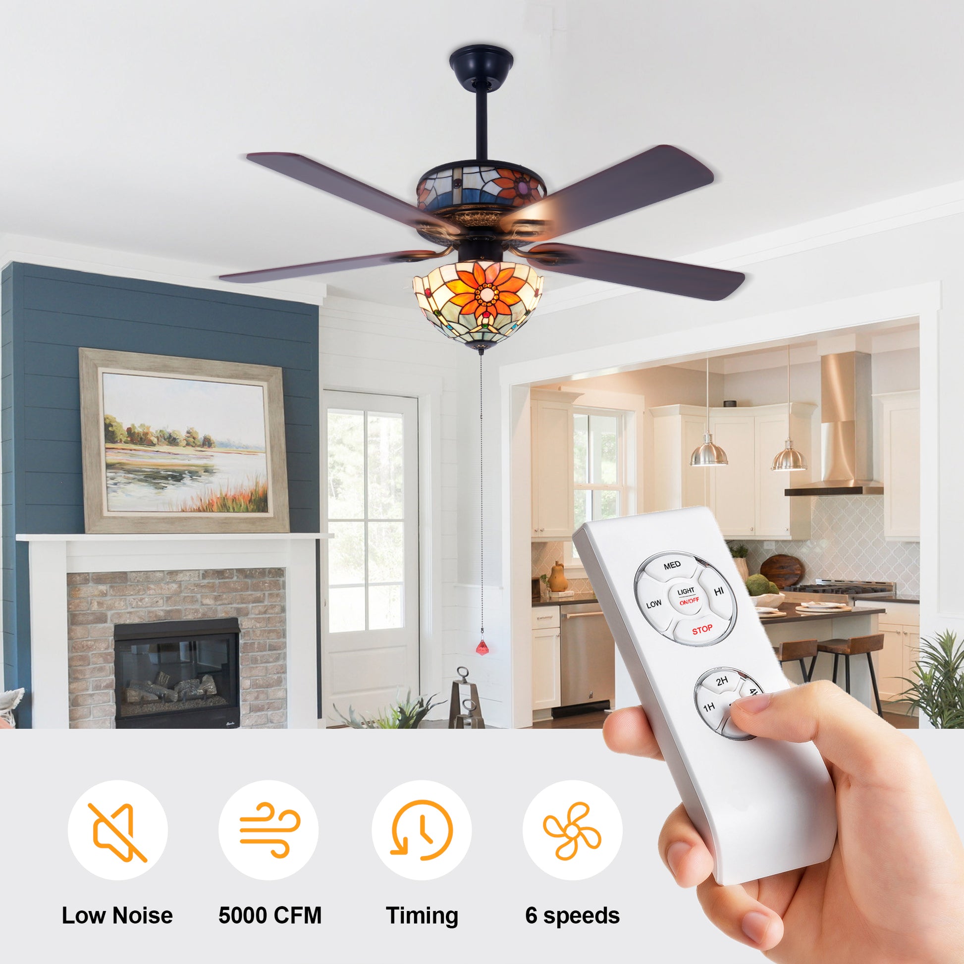 52" Wooden Ceiling Fan Light Fixture Remote Control Hanging Lamp 110V-220V DS-FH87