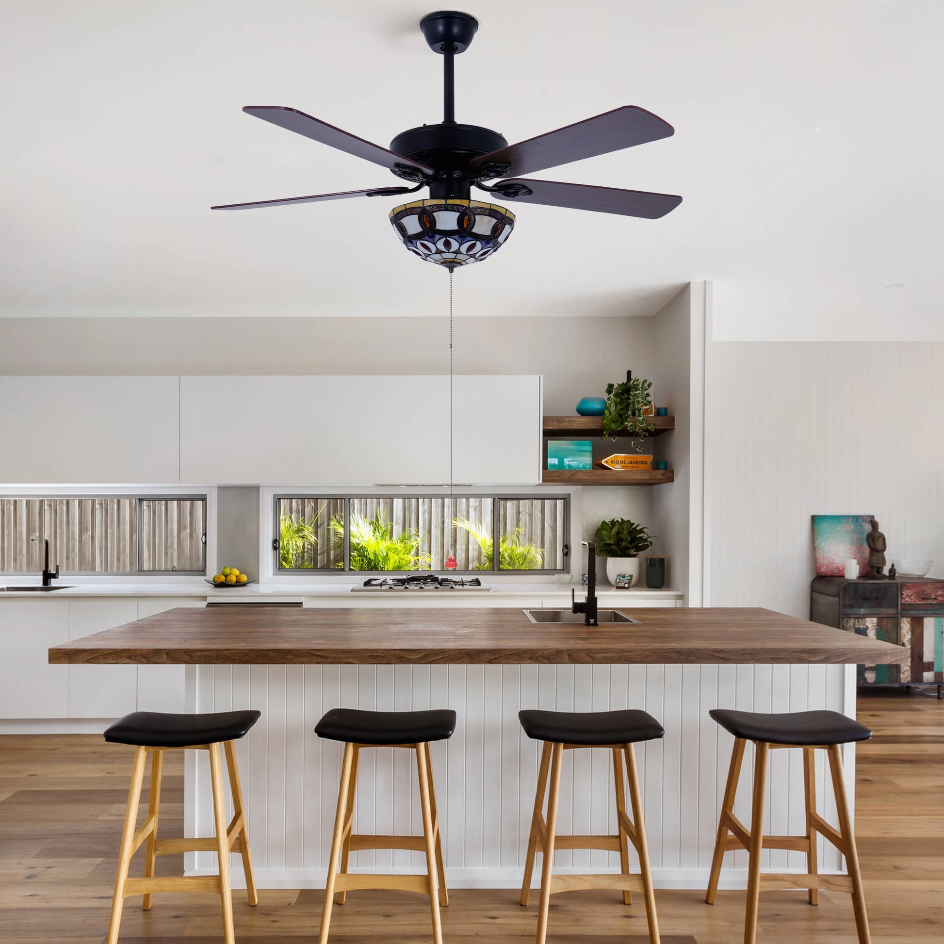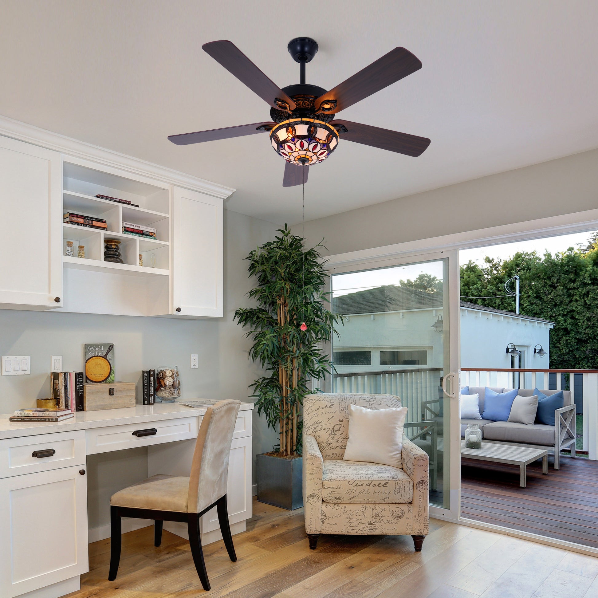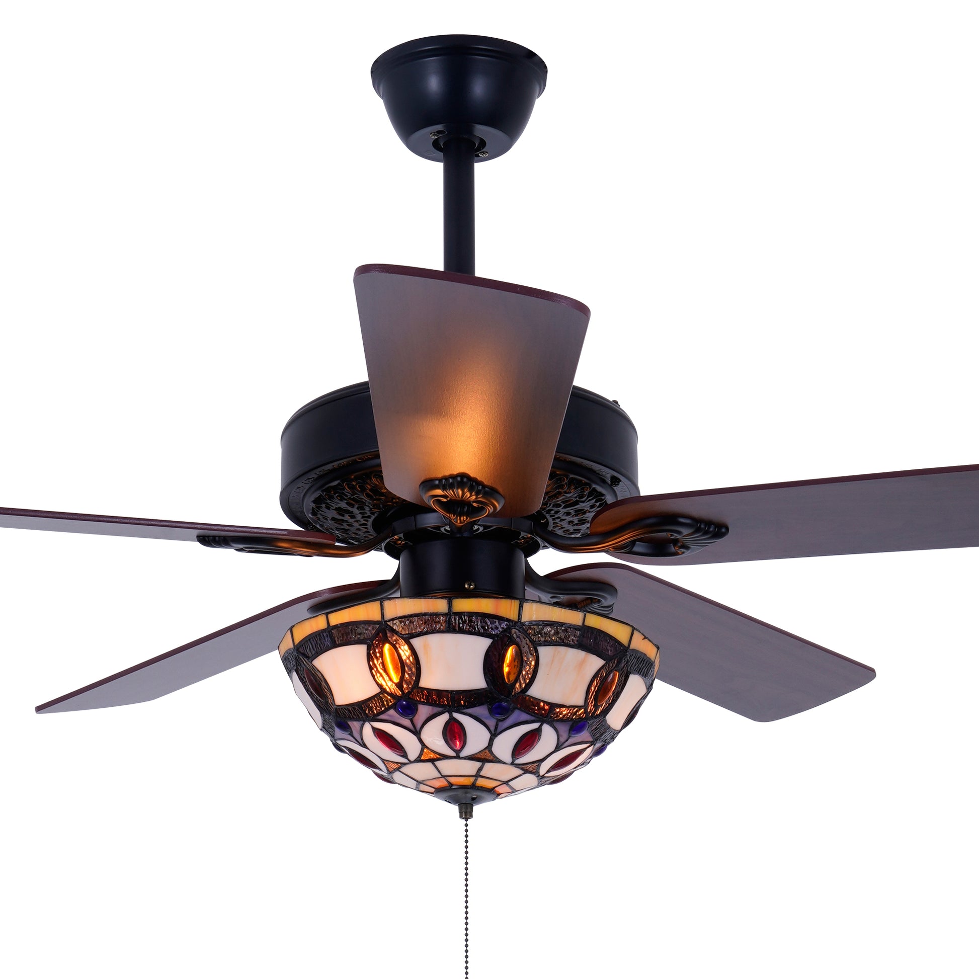 52-Inch Black Ceiling Fan With Tiffany Light DS-FH88