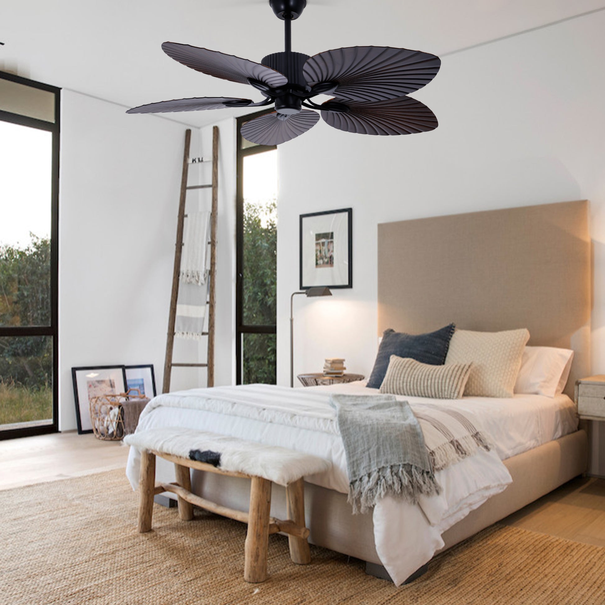 52" Palm Leaf Ceiling Fan with 5 Blades and Lampshades - Bronze Finish for Bedroom and Living Room DS-FH90