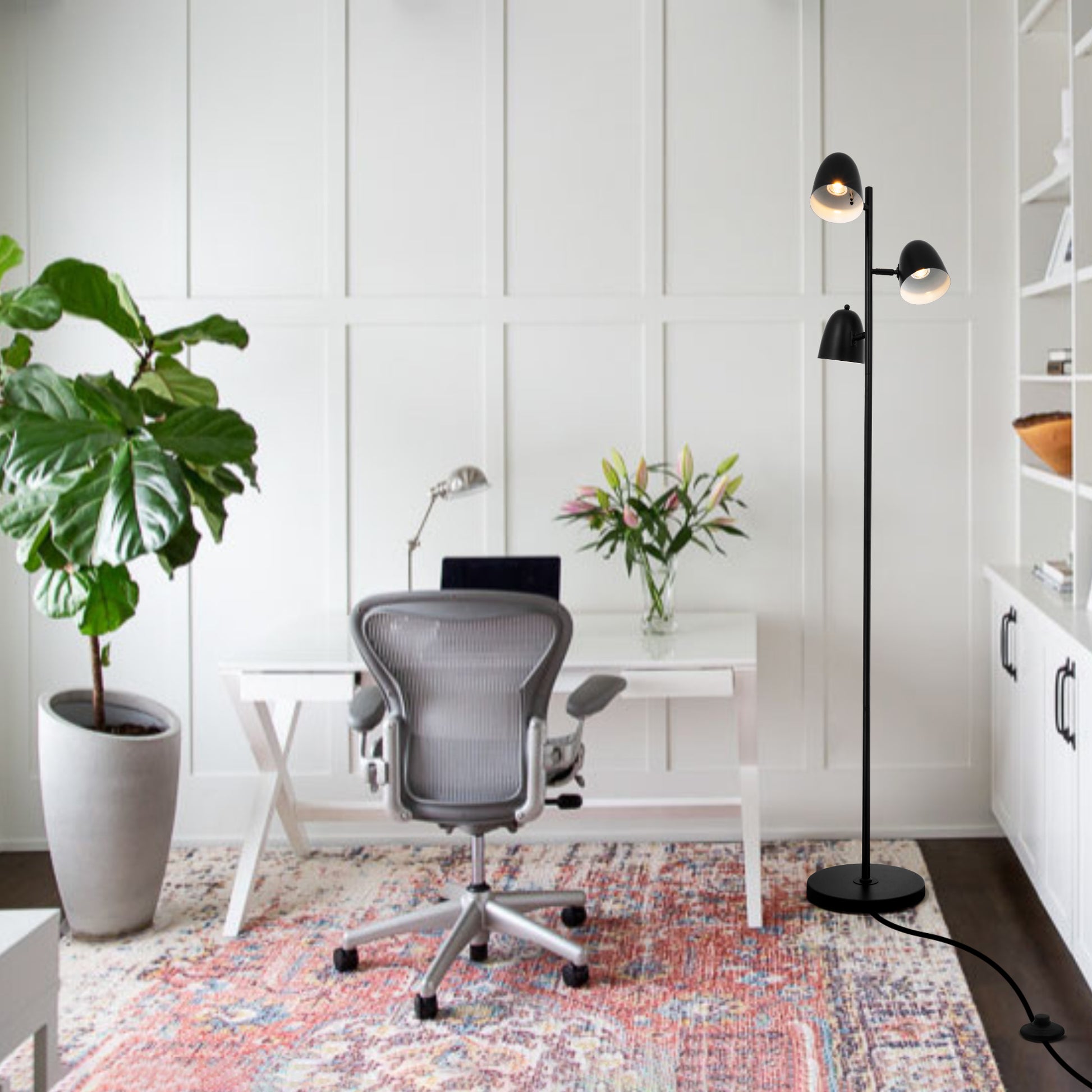 【 Industrial & Modern Appearance】The 3 lights led floor lamp is designed to Industrial appearance, with a classic modern black finish and sleek lines that combines classic and modern design. The led floor lamp suitable for any styles home decation, it can be placed next to the sofa, the living room, or the bed nook in the bedroom to update your spaces.